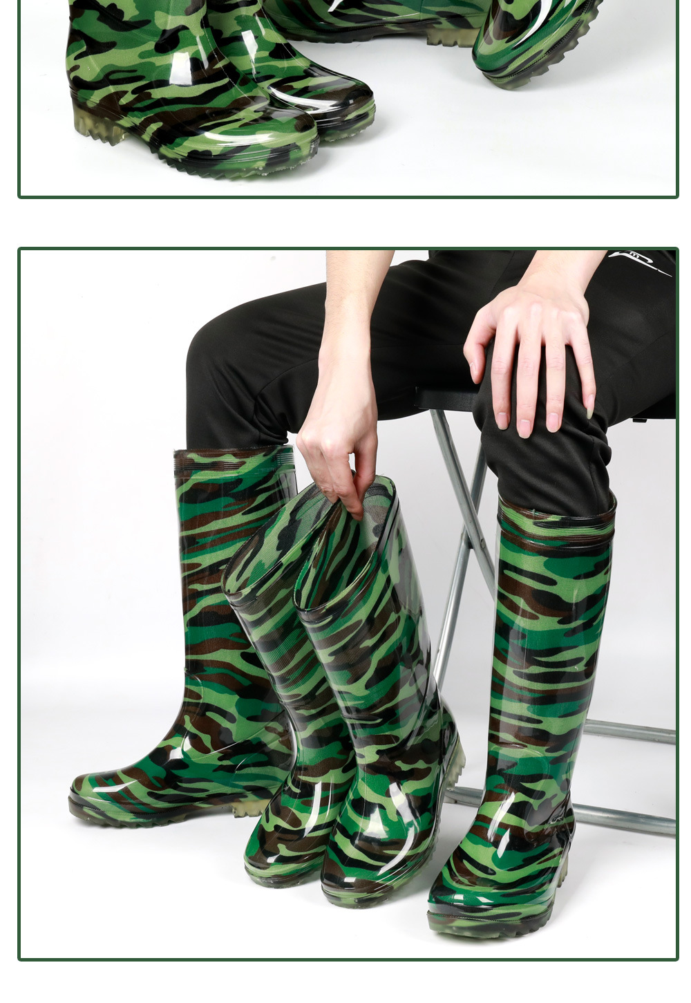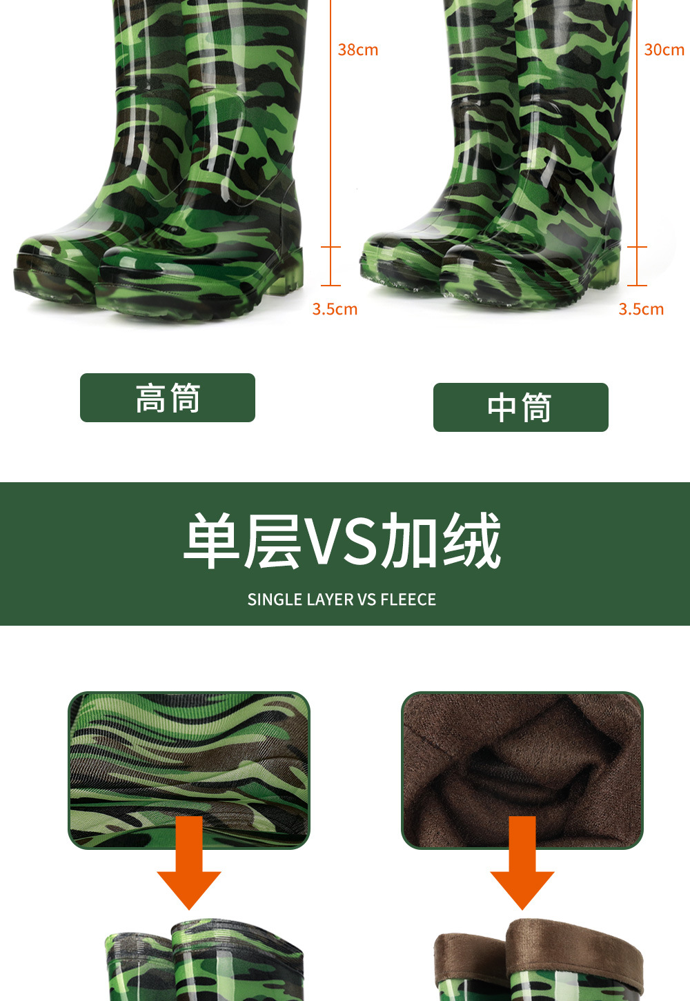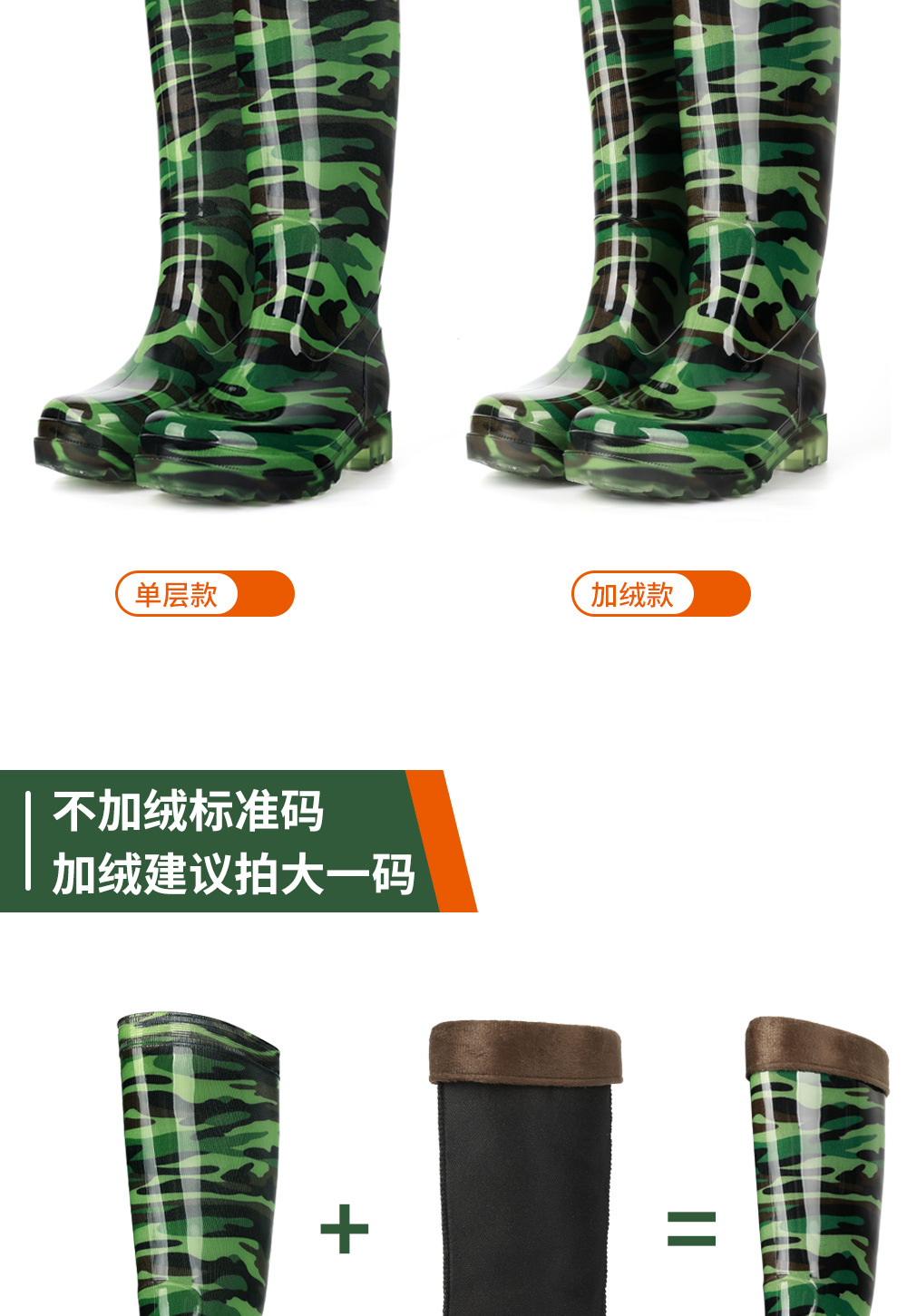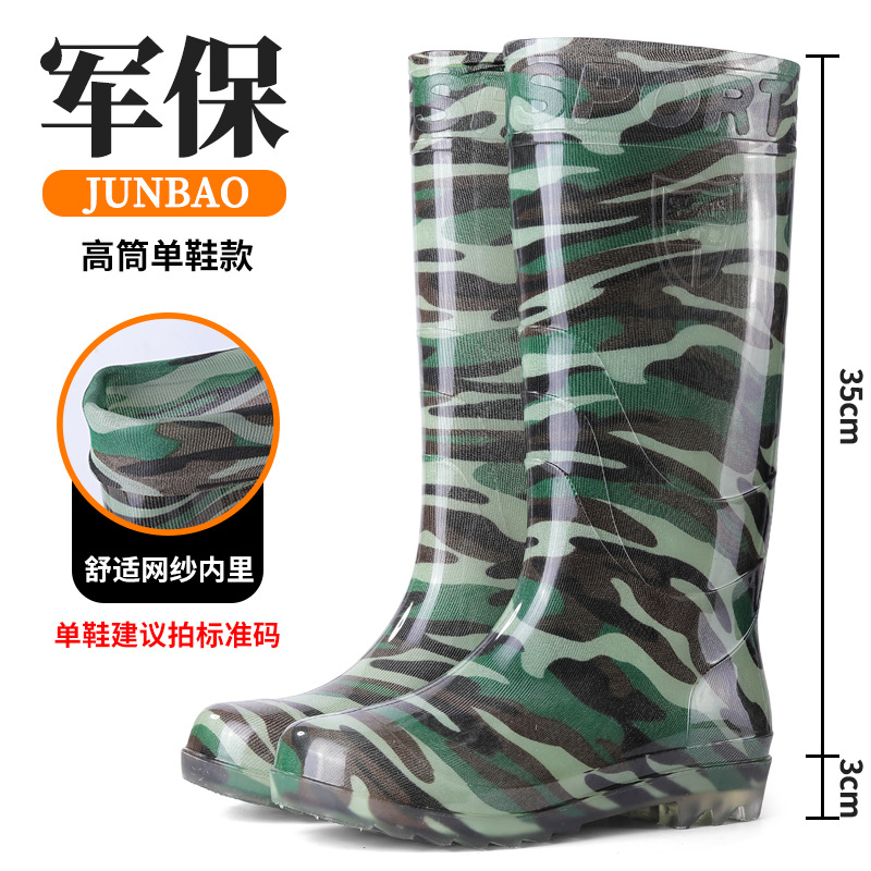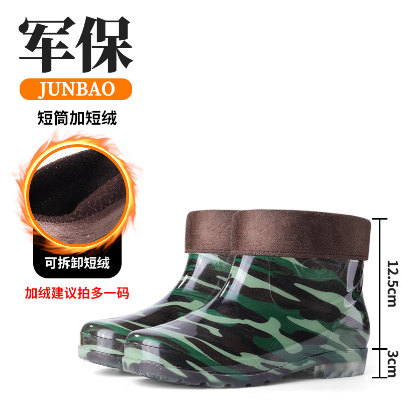 남성용 쇠고기 힘줄 바닥 위장 장화, 남성용 하이탑 미끄럼 방지 중간 튜브 두꺼운 벨벳 고무 신발, 세차장 건설 현장 노동 보호 워터 슈즈스토어 가기