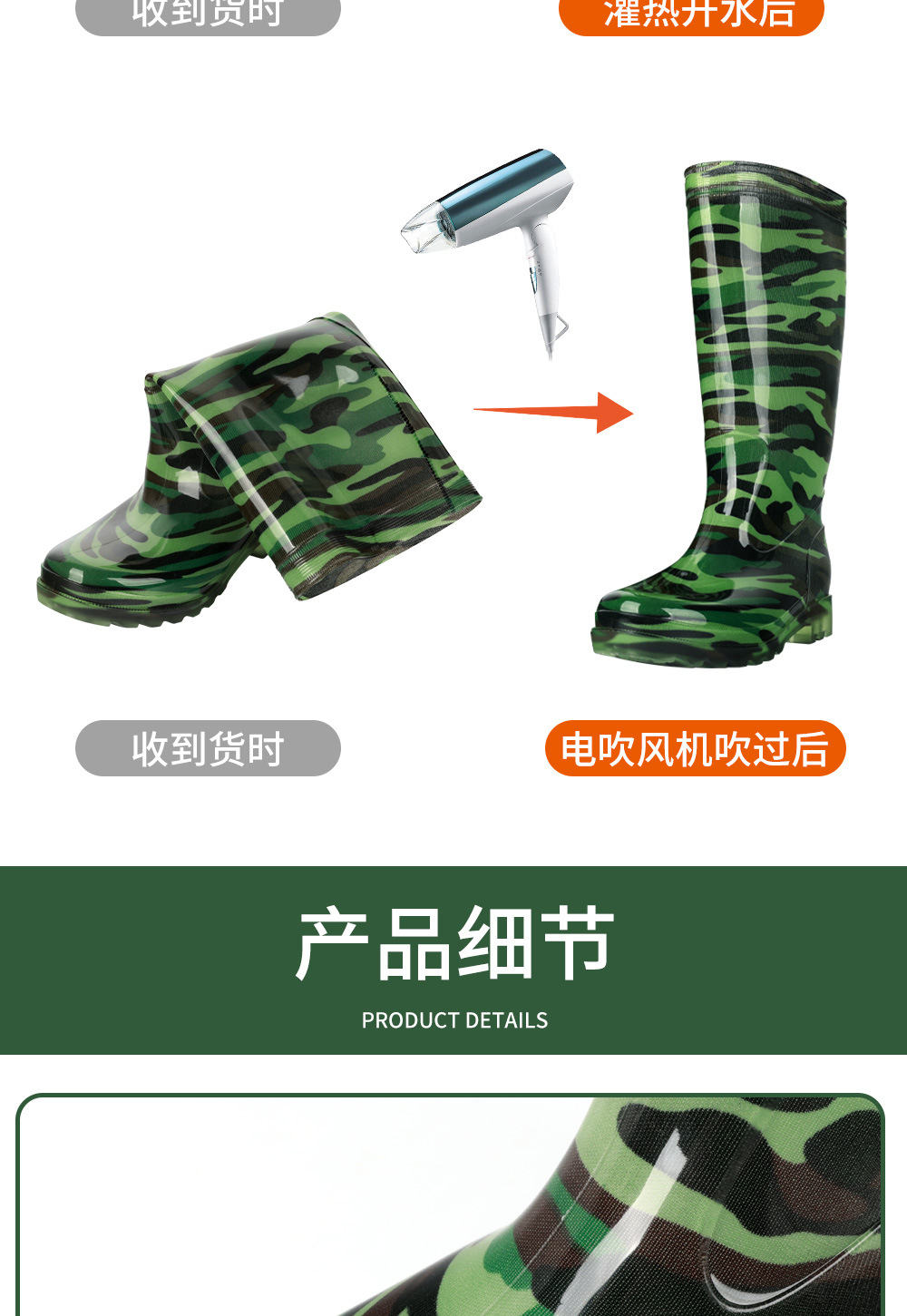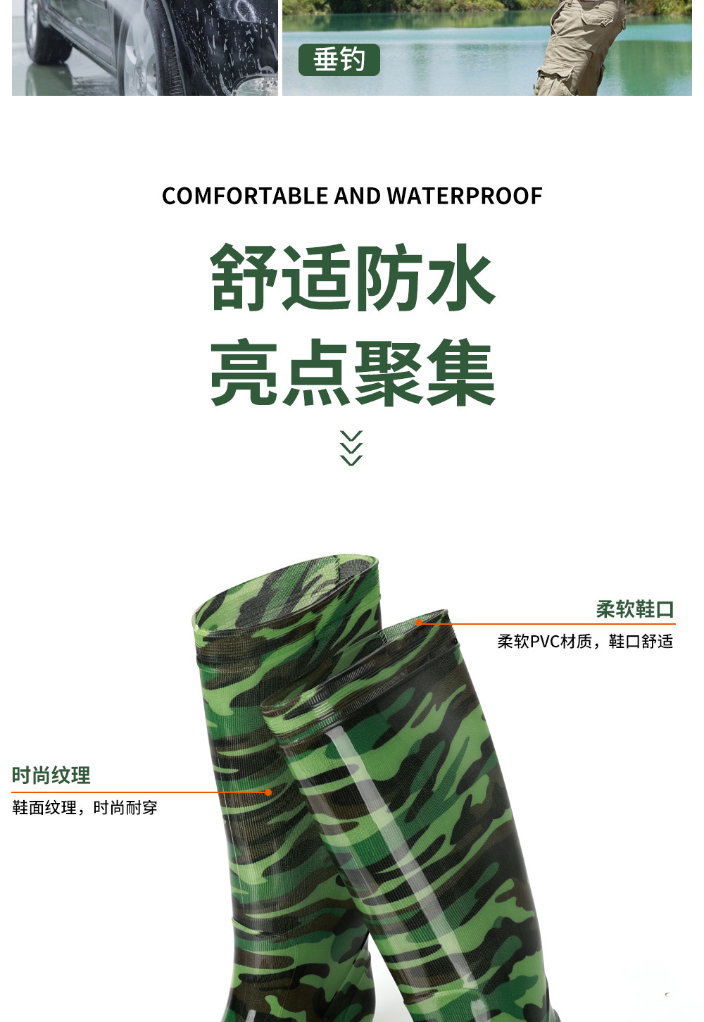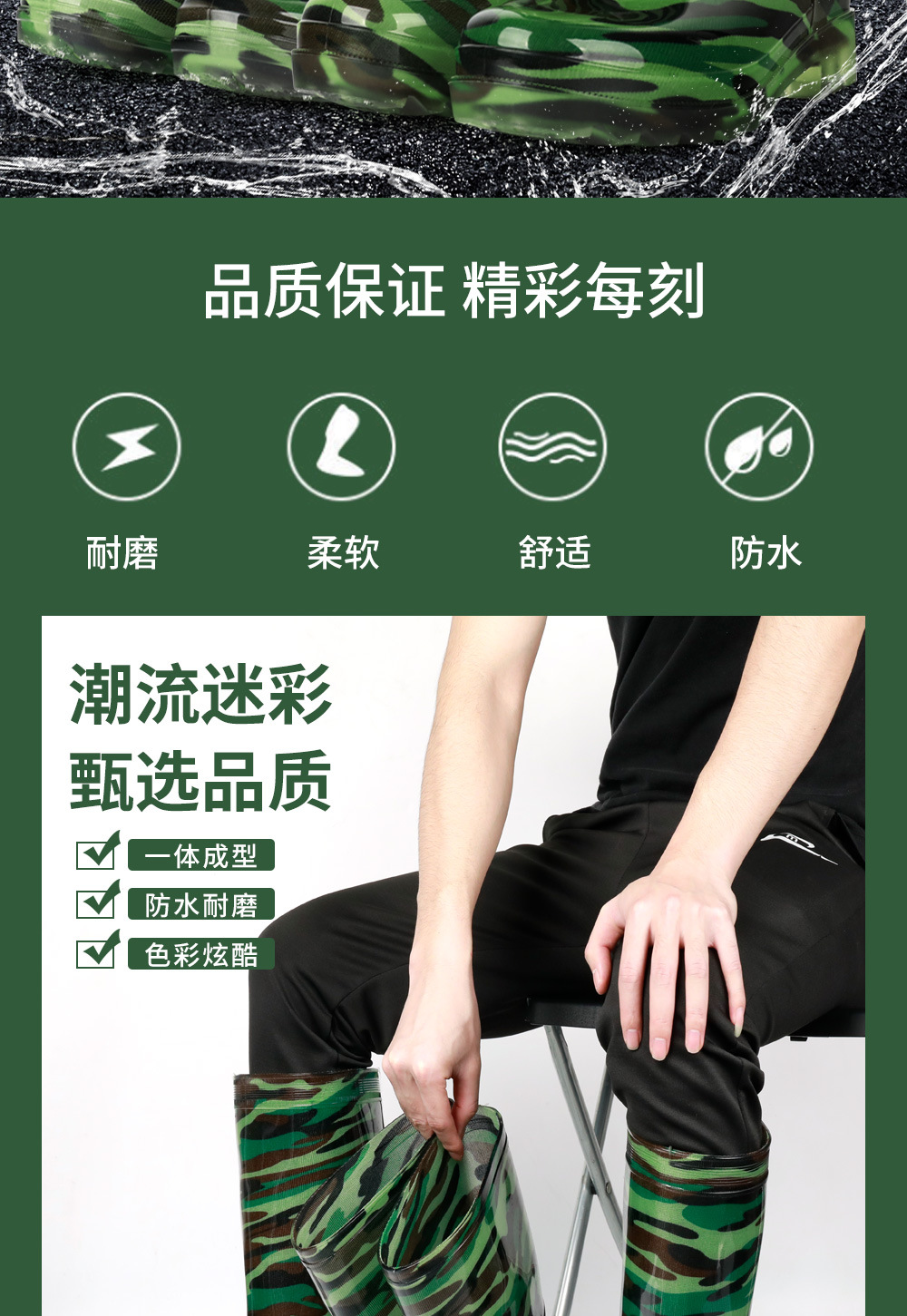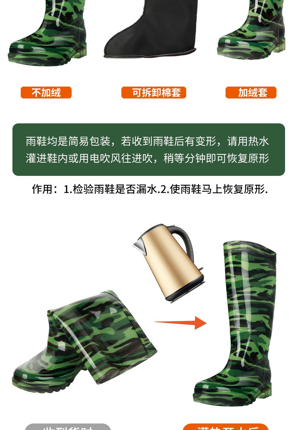 남성용 쇠고기 힘줄 바닥 위장 장화, 남성용 하이탑 미끄럼 방지 중간 튜브 두꺼운 벨벳 고무 신발, 세차장 건설 현장 노동 보호 워터 슈즈스토어 가기