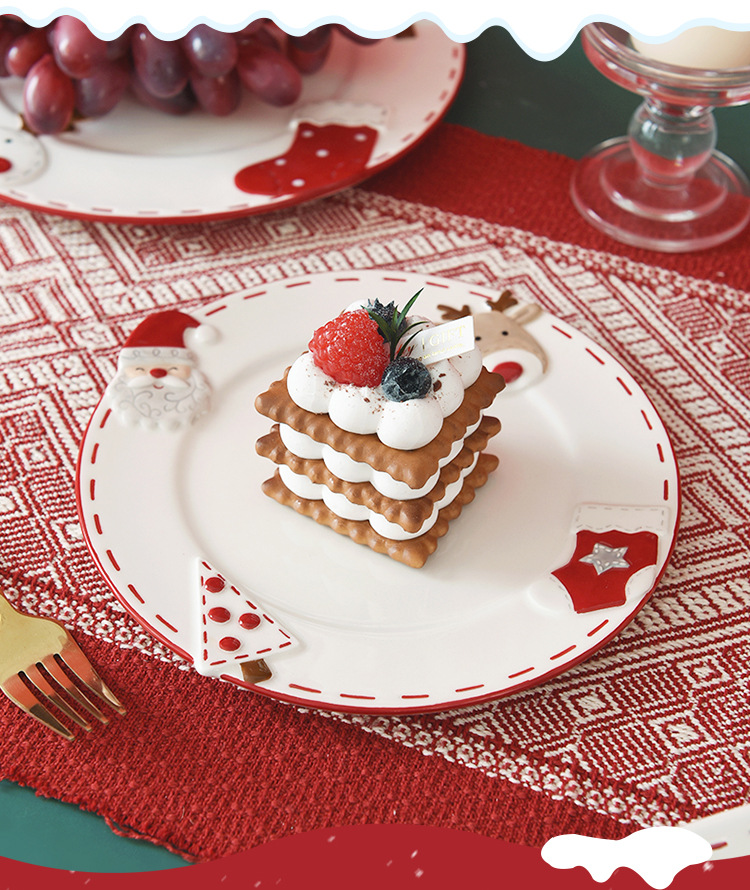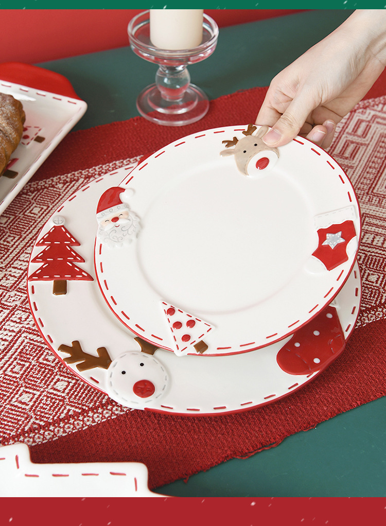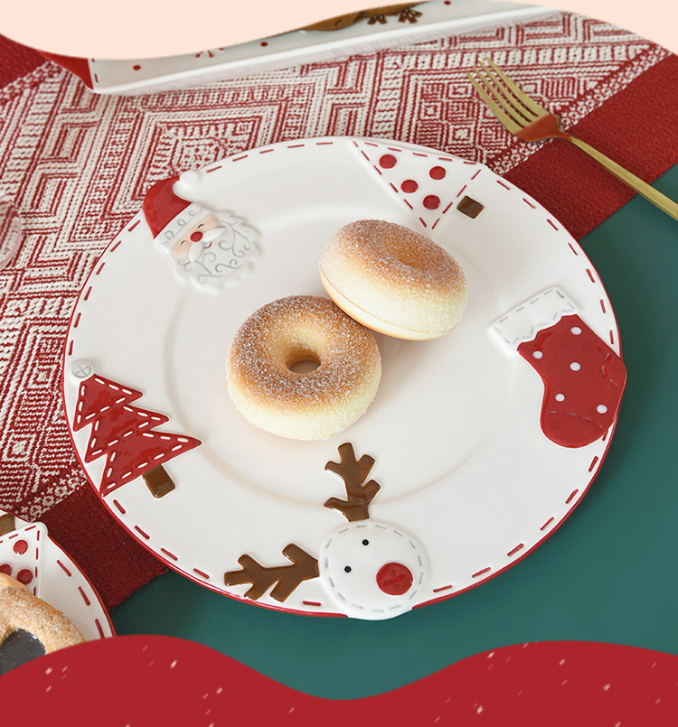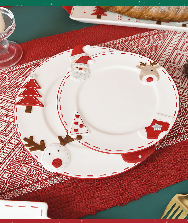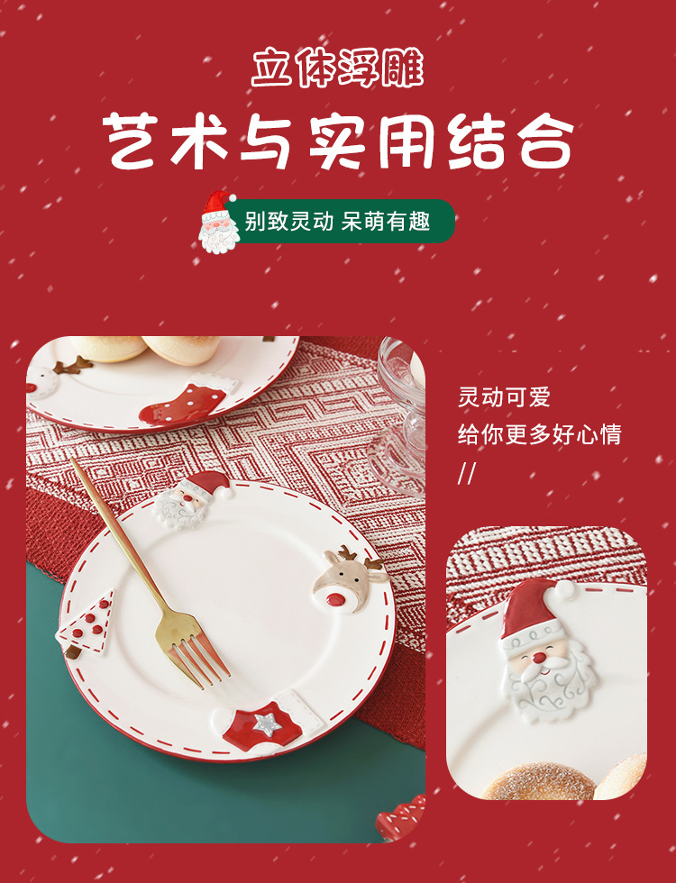 북유럽 산타 클로스 세라믹 디스크 서양식 디너 플레이트 창조적 인 양각 대형 플레이트 디저트 플레이트 가정용 식기스토어 가기