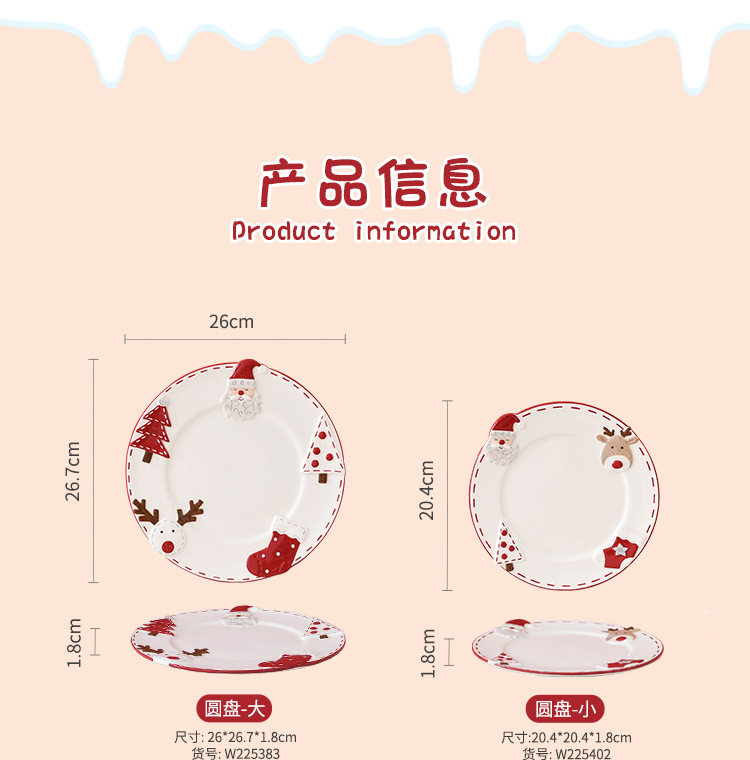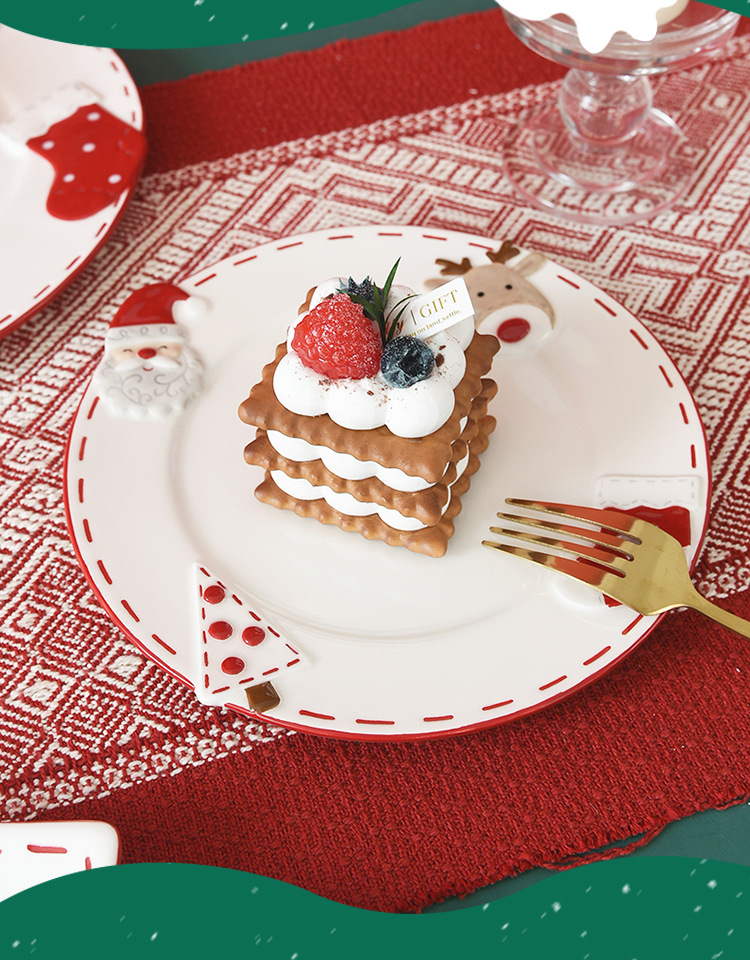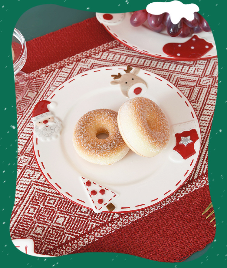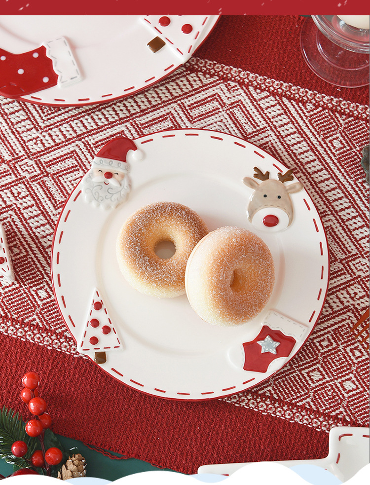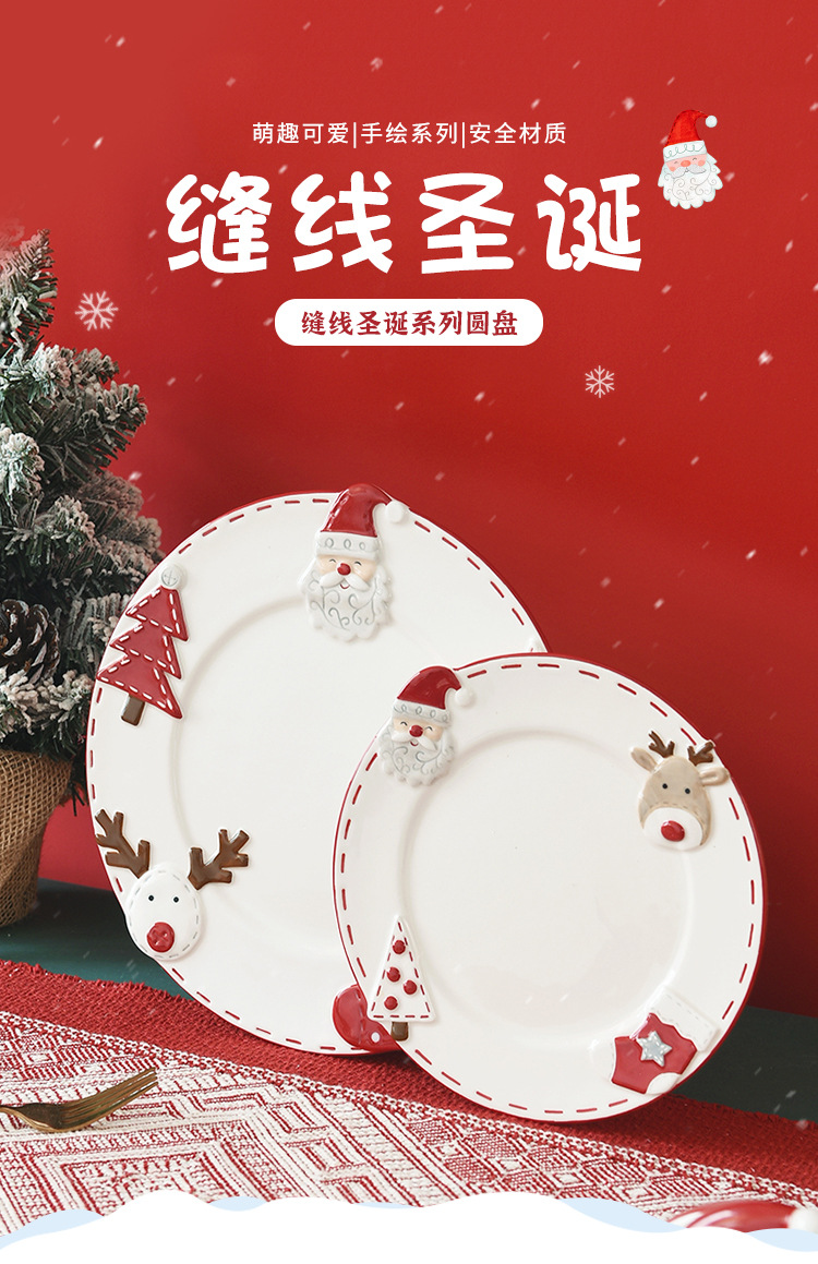북유럽 산타 클로스 세라믹 디스크 서양식 디너 플레이트 창조적 인 양각 대형 플레이트 디저트 플레이트 가정용 식기스토어 가기