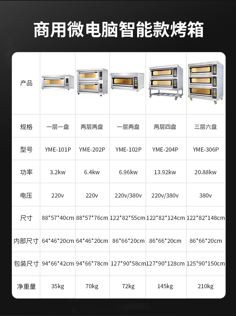 • 2층 2판/마이크로컴퓨터 지능형 온도 조절 YME-202P(주문 시 전압을 참고하세요) 오븐 랙은 별도로 구매해야 합니다.