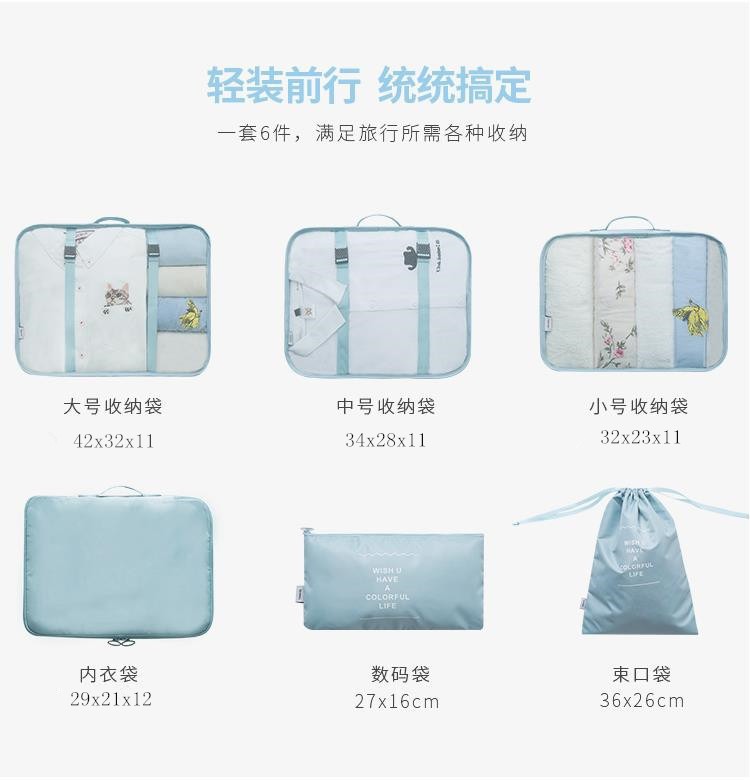 • 밝은 파란색 여행용 수납 가방 6개 세트