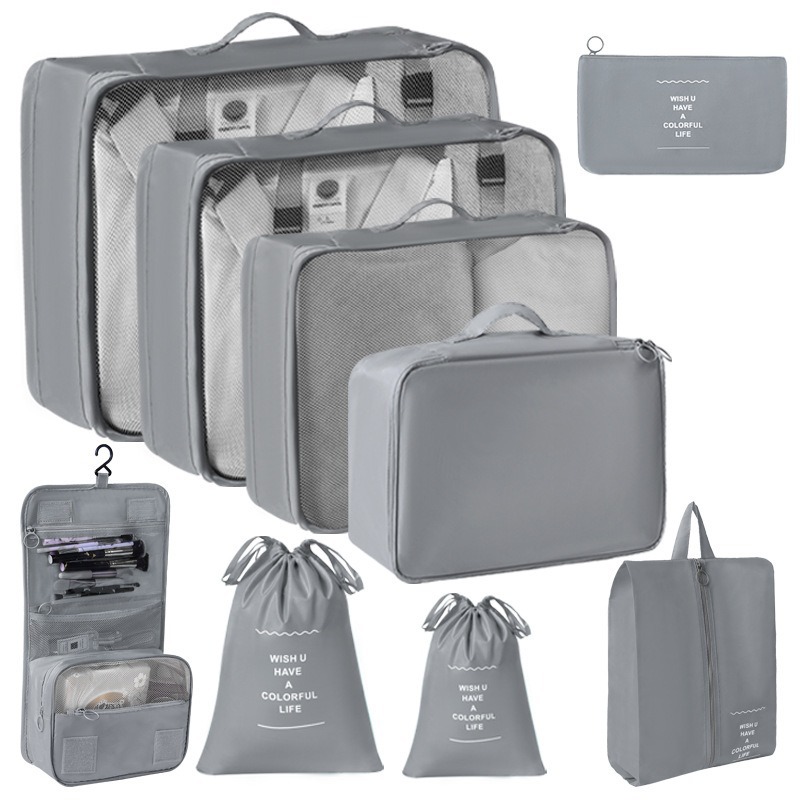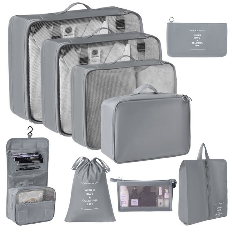 • 그레이 여행용 수납가방 9종 세트 [후크 세면도구 가방 + 화장품 가방 스타일]
