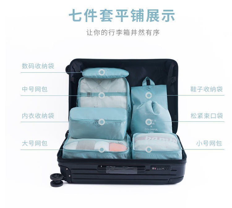 • 브라이트 블루 여행용 수납가방 7종 세트 [업그레이드 모델]