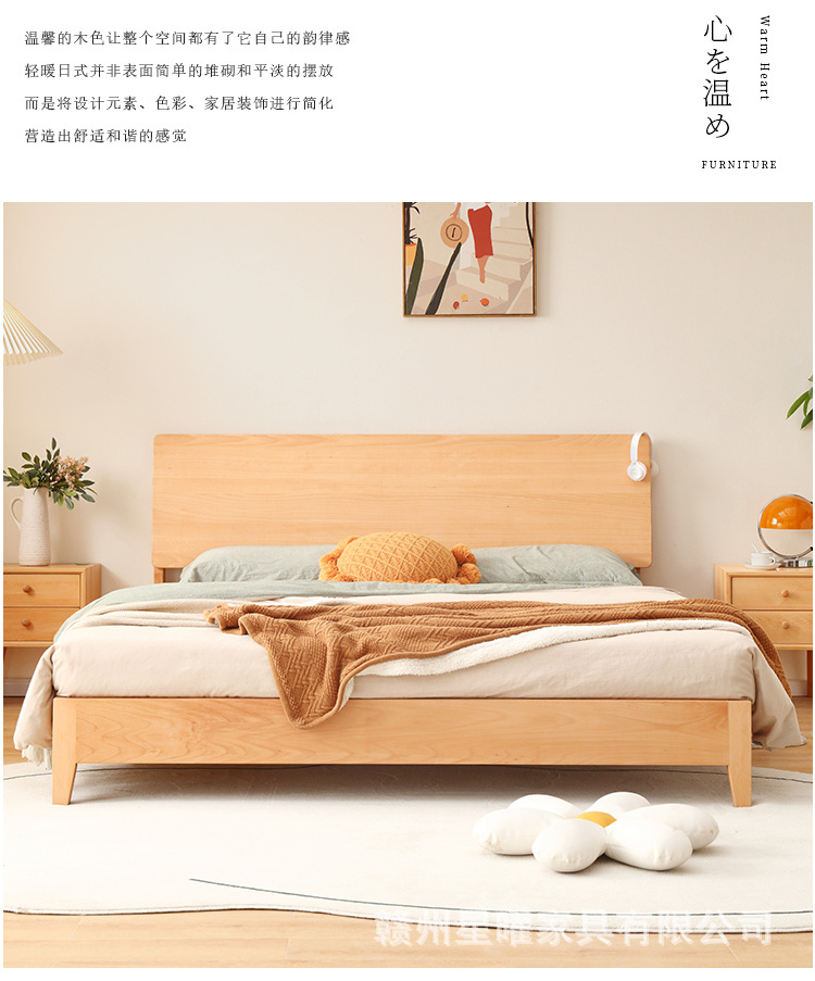너도밤 나무 단단한 나무 침대 1.8m 더블 침대 공장 직접 현대 간단한 마스터 침실 웨딩 침대 1.5m 어린이 통나무 침대