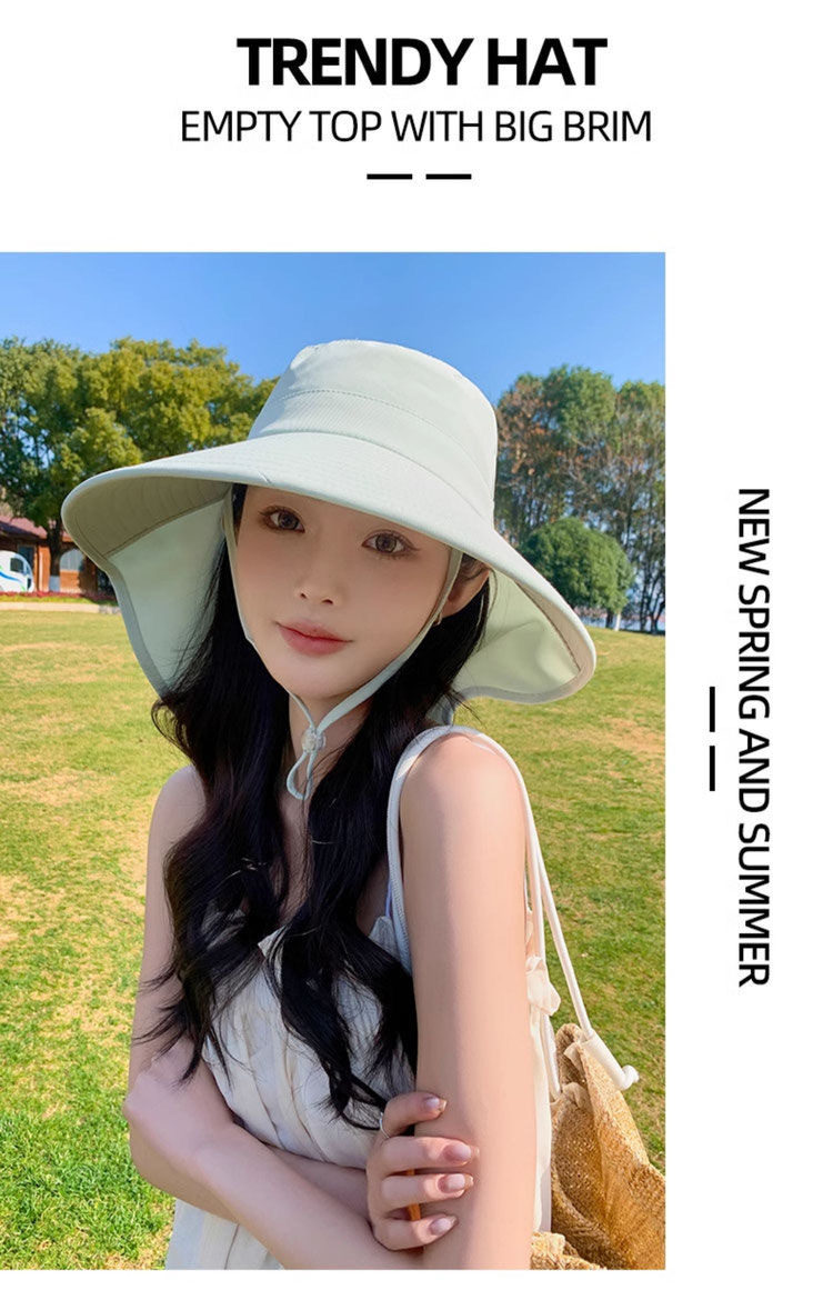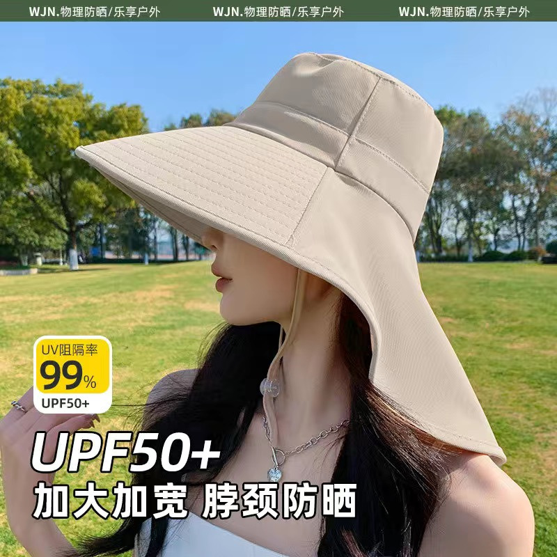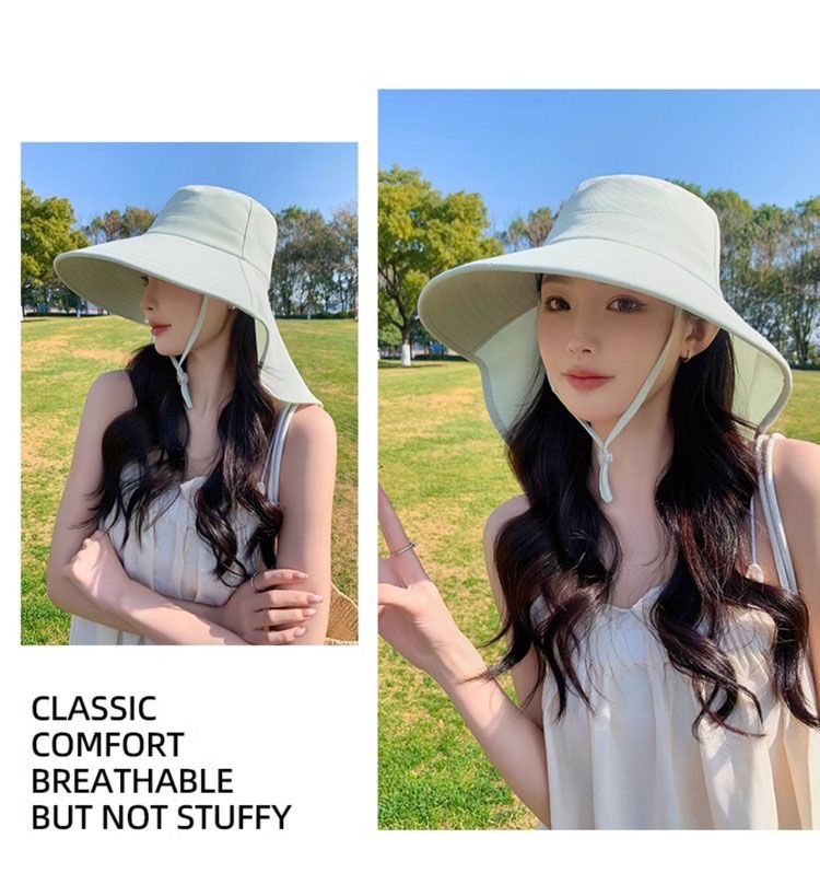 선스크린 모자 어린이 여름 큰 처마 야외 목도리 어부 모자 목 보호 태양 모자 UV 보호 승마 태양 모자