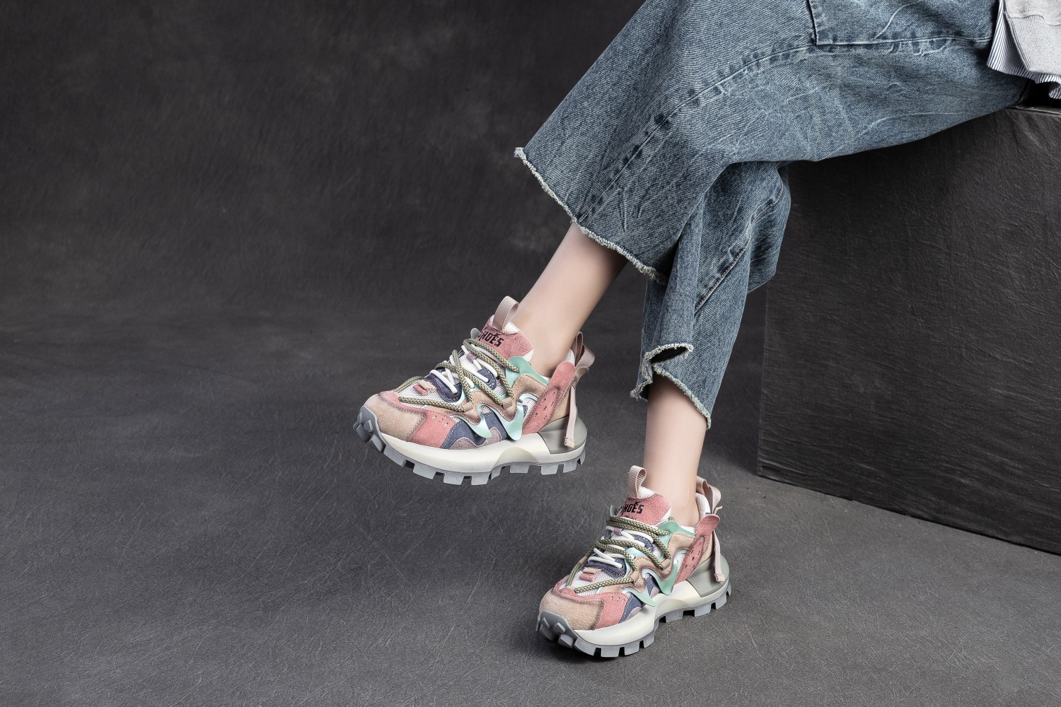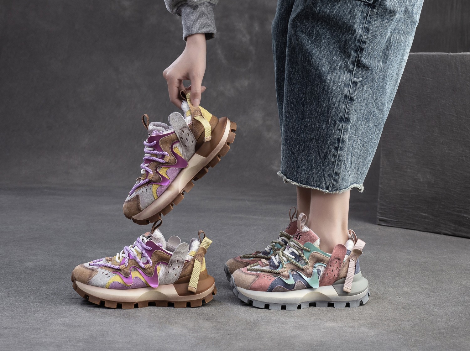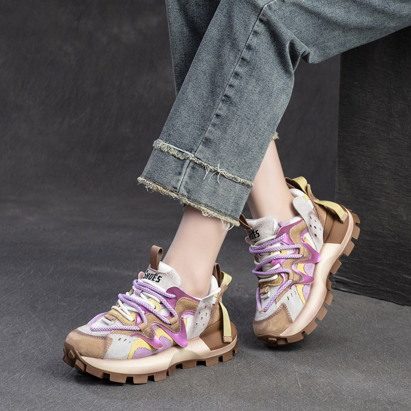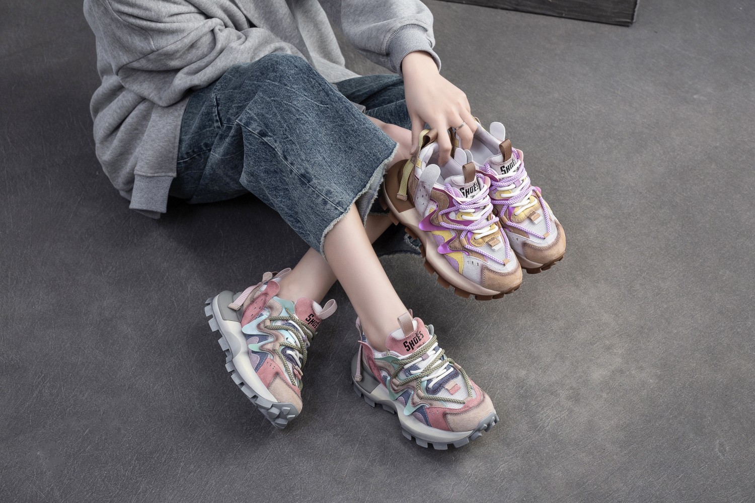 소가죽 통기성 메쉬 두꺼운 밑창 아빠 신발 여성의 2024 새로운 여름 증가 된 슬림 스포츠 캐주얼 신발