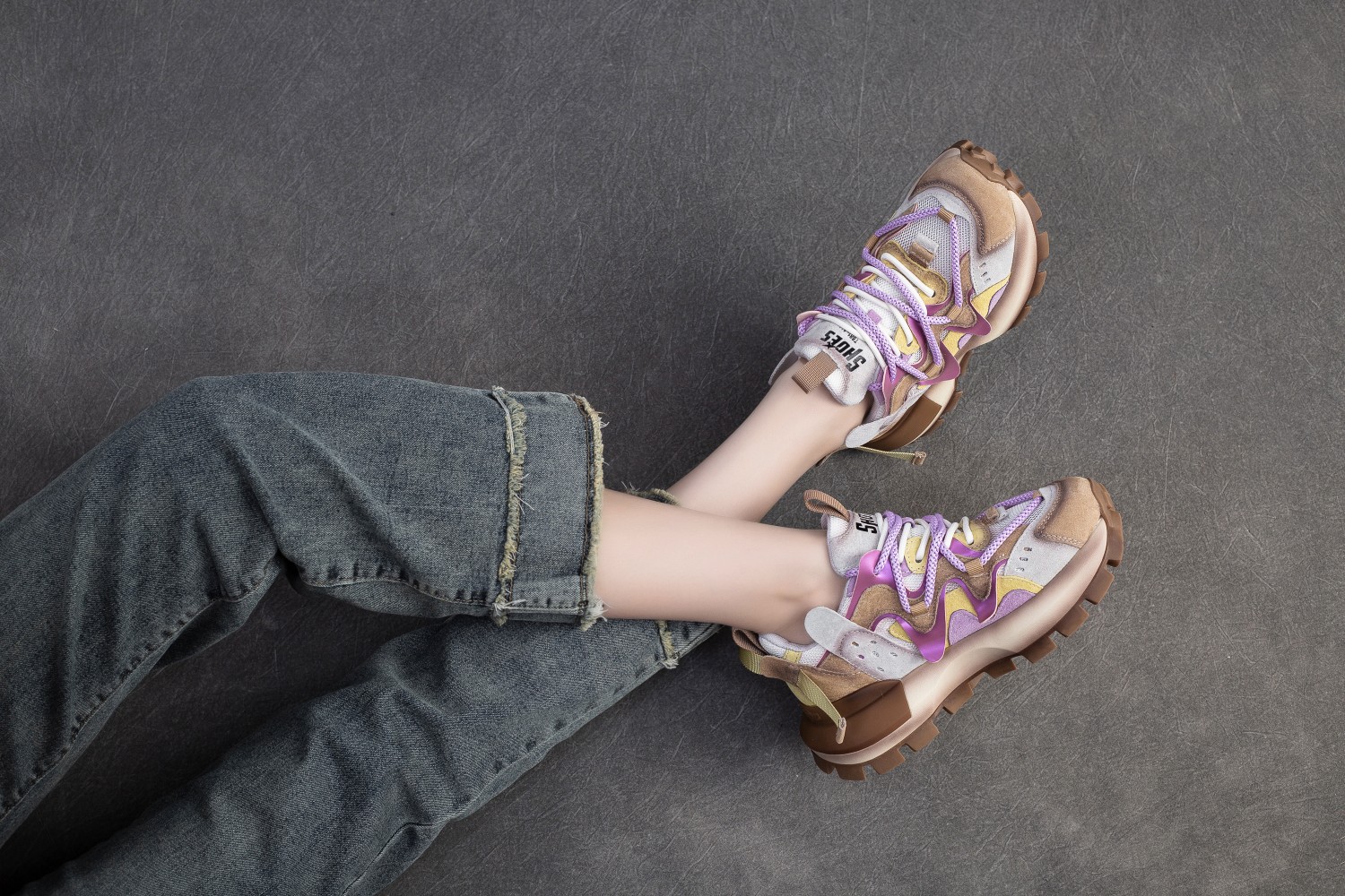 소가죽 통기성 메쉬 두꺼운 밑창 아빠 신발 여성의 2024 새로운 여름 증가 된 슬림 스포츠 캐주얼 신발스토어 가기