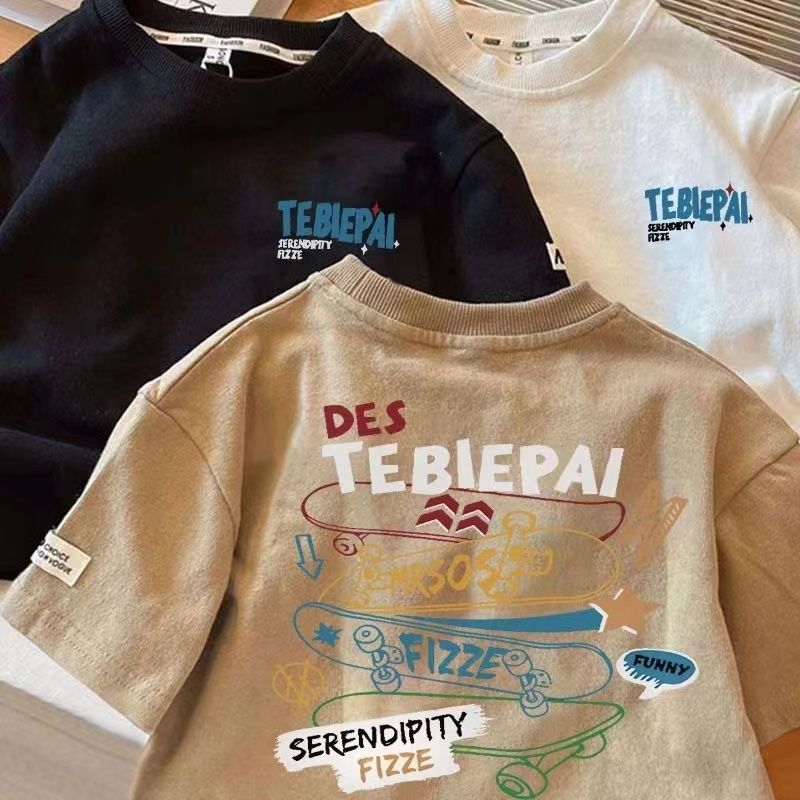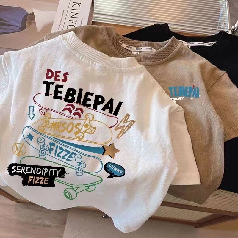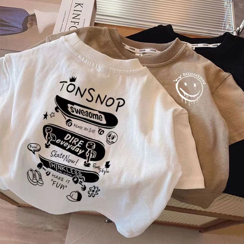 도매 어린이 여름 옷 소년 반팔 티셔츠 95 면 아기 트렌디 쿨 탑 2024 여름 새 소년 느슨한