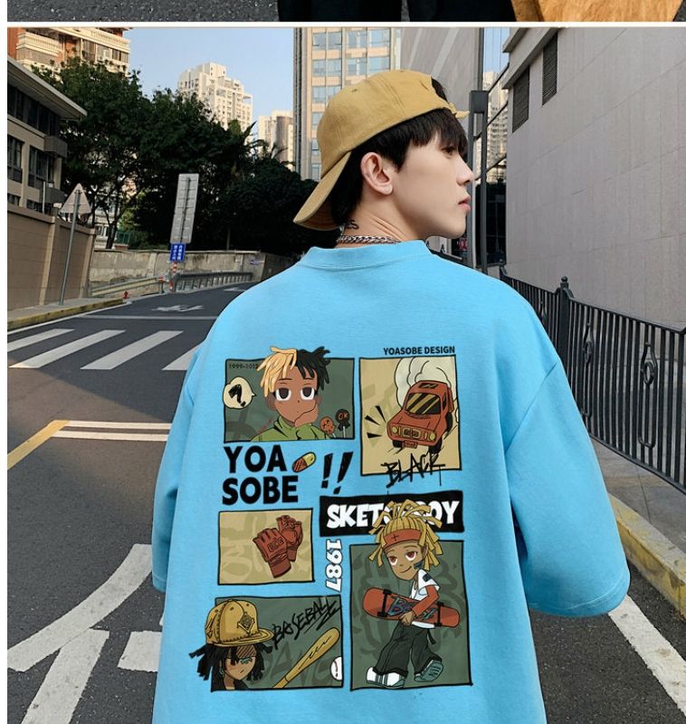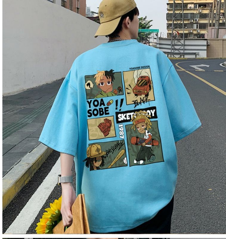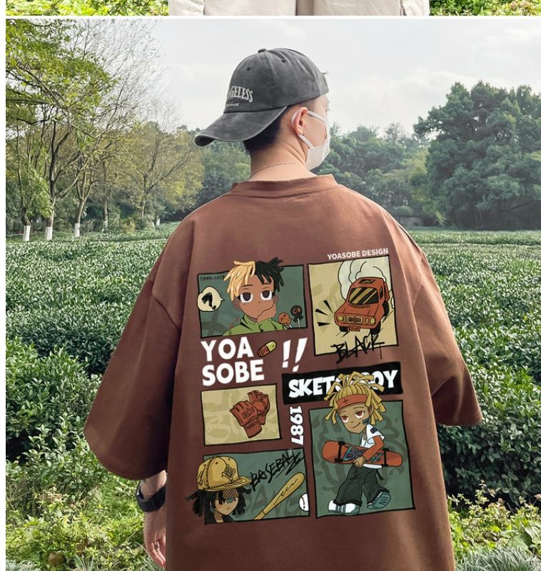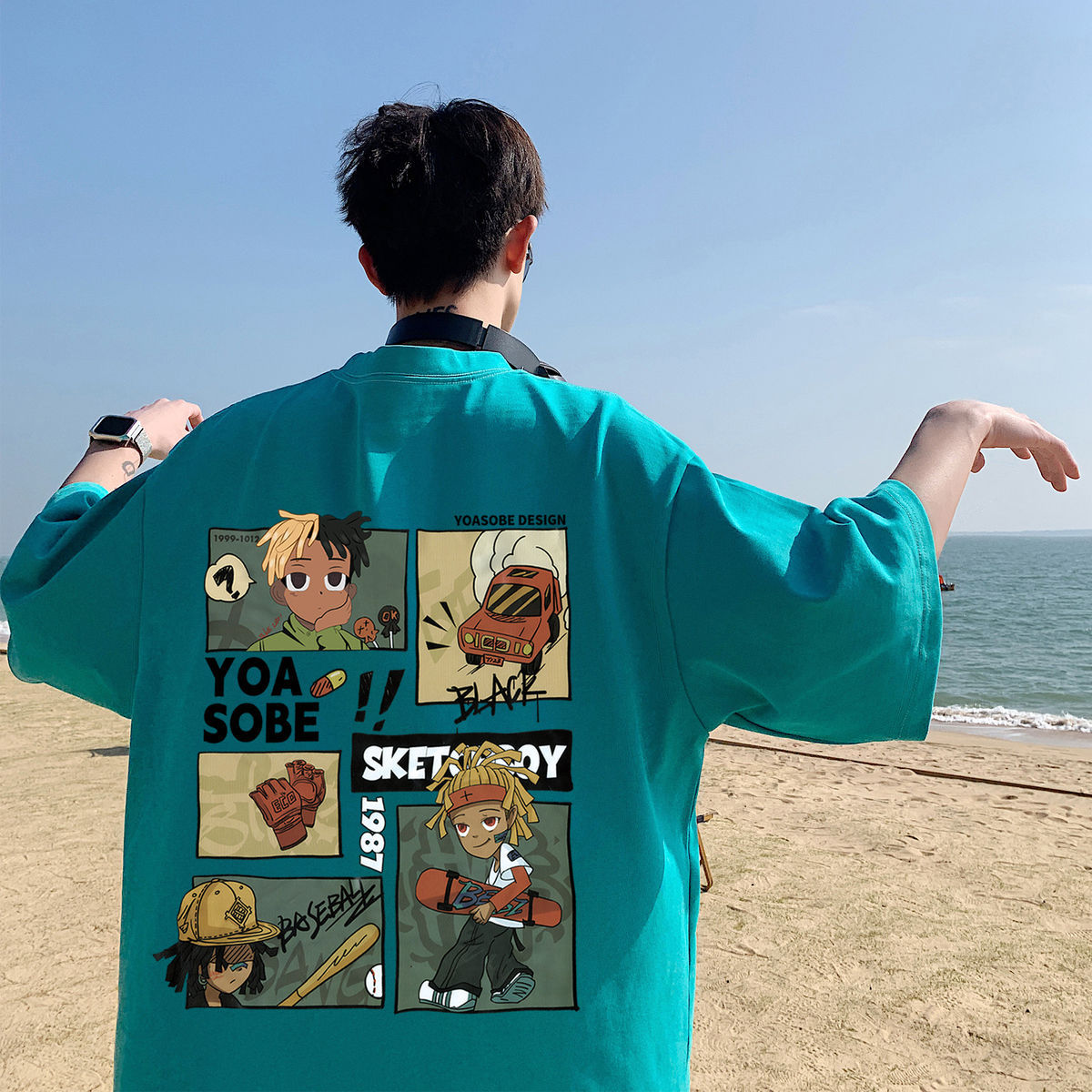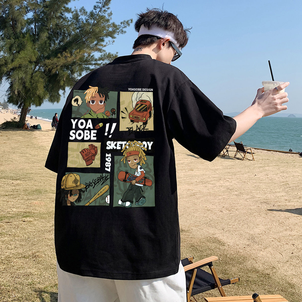 NASA 프린트 패턴 반팔 티셔츠 남성용 대형 미국 복고풍 유럽과 미국 패션 브랜드 트렌드 7 반 소매 여름 남성스토어 가기