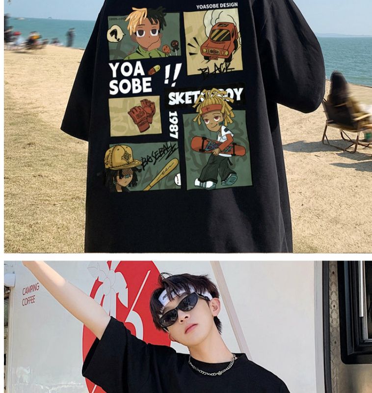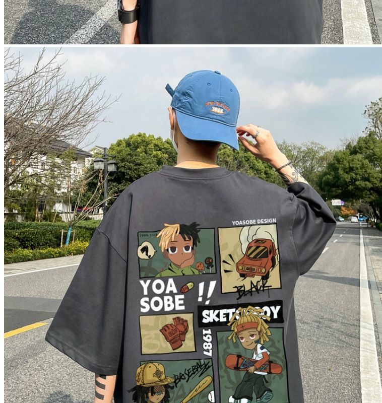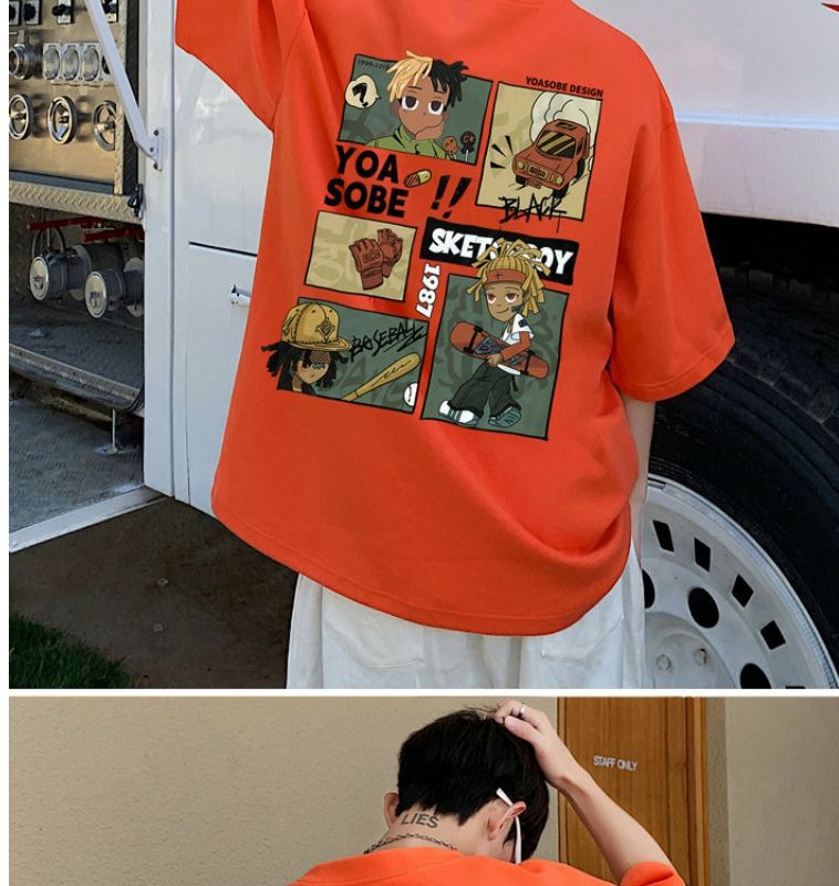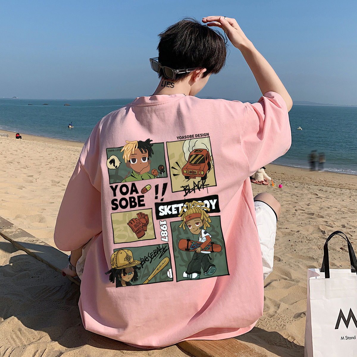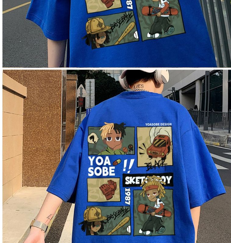 NASA 프린트 패턴 반팔 티셔츠 남성용 대형 미국 복고풍 유럽과 미국 패션 브랜드 트렌드 7 반 소매 여름 남성스토어 가기