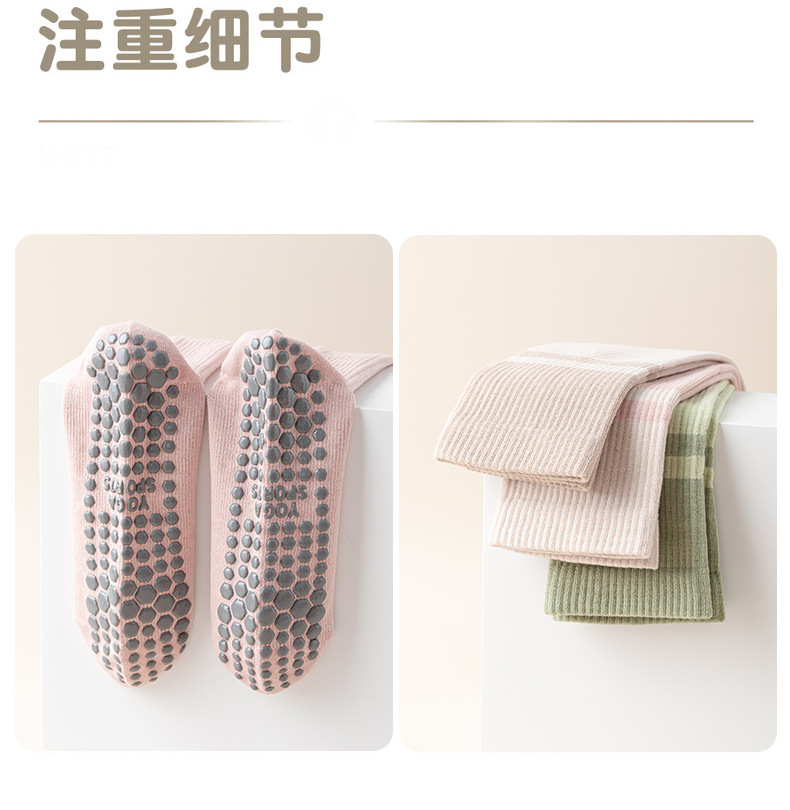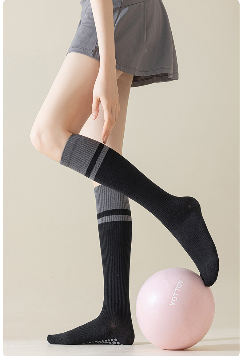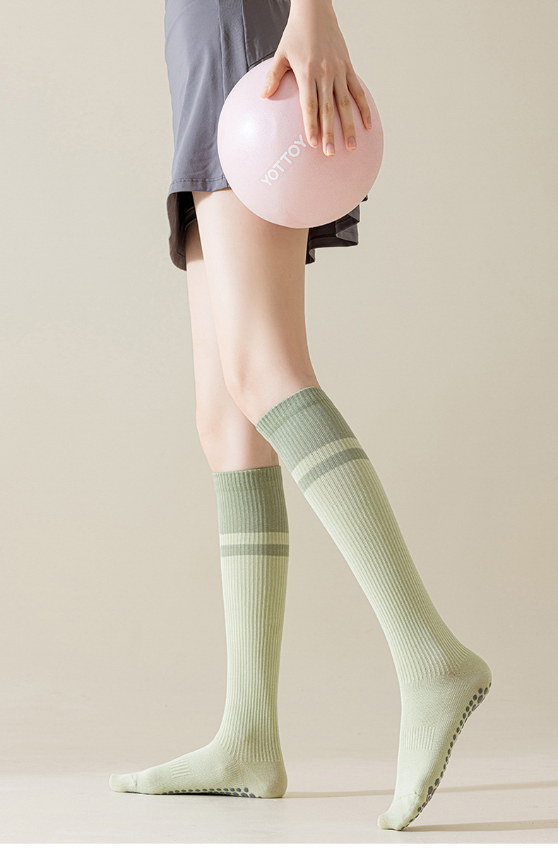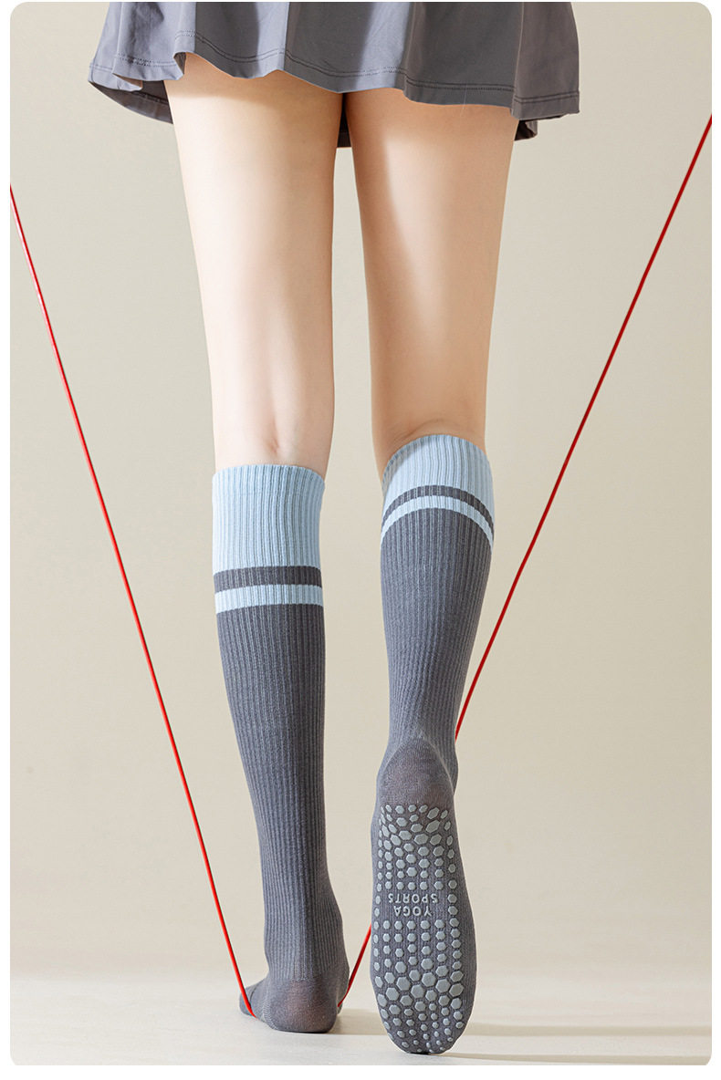 전문 요가 양말 여성용 롱 튜브 필라테스 실리콘 미끄럼 방지 가을 겨울 실내 피트니스 면 양말 종아리 및 무릎 높이 양말스토어 가기