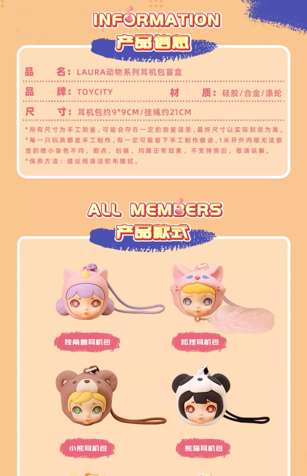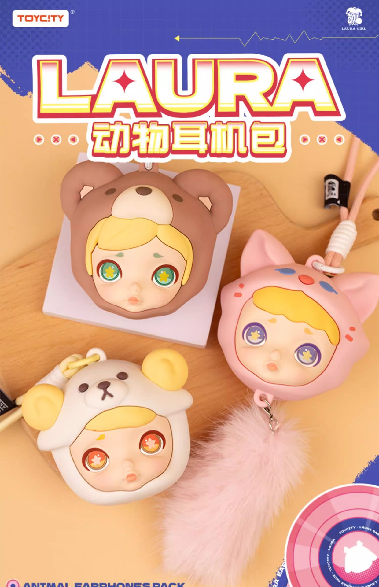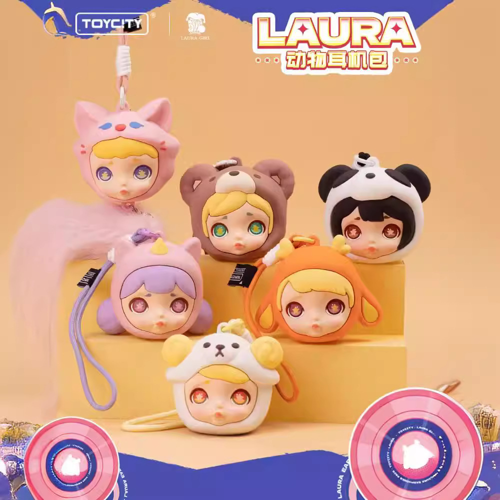 LAURA Laura 동물 시리즈 헤드셋 가방 블라인드 박스 트렌디 플레이 주변 핸드 헬드 헤드셋 가방 귀여운 작은 선물스토어 가기