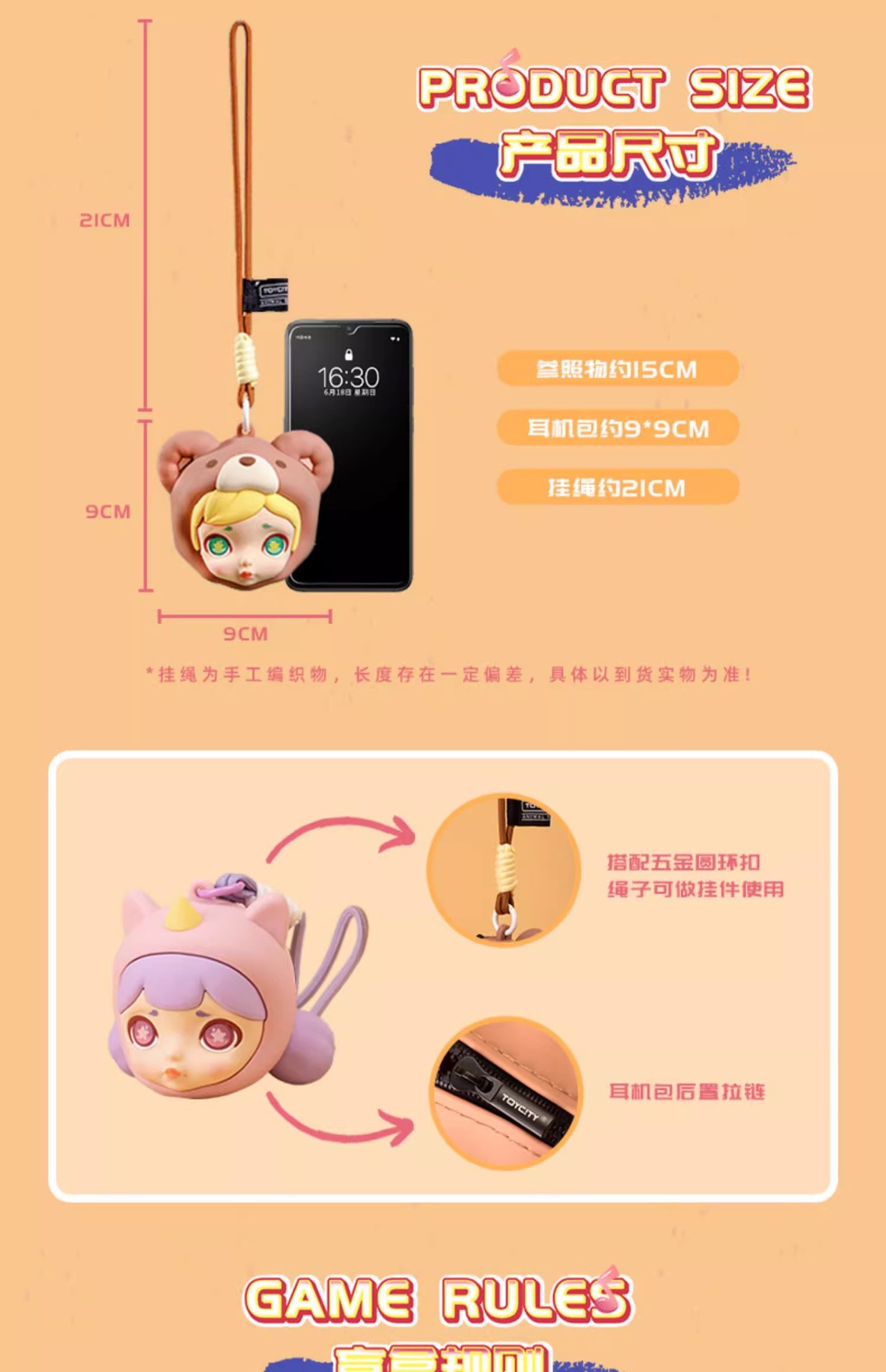 LAURA Laura 동물 시리즈 헤드셋 가방 블라인드 박스 트렌디 플레이 주변 핸드 헬드 헤드셋 가방 귀여운 작은 선물
