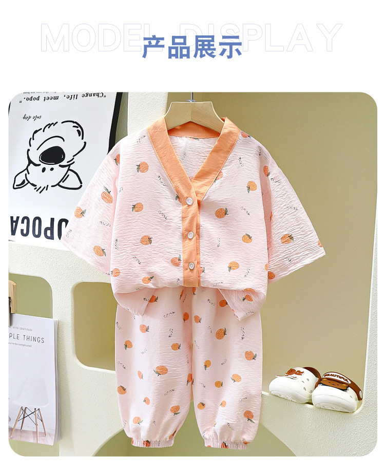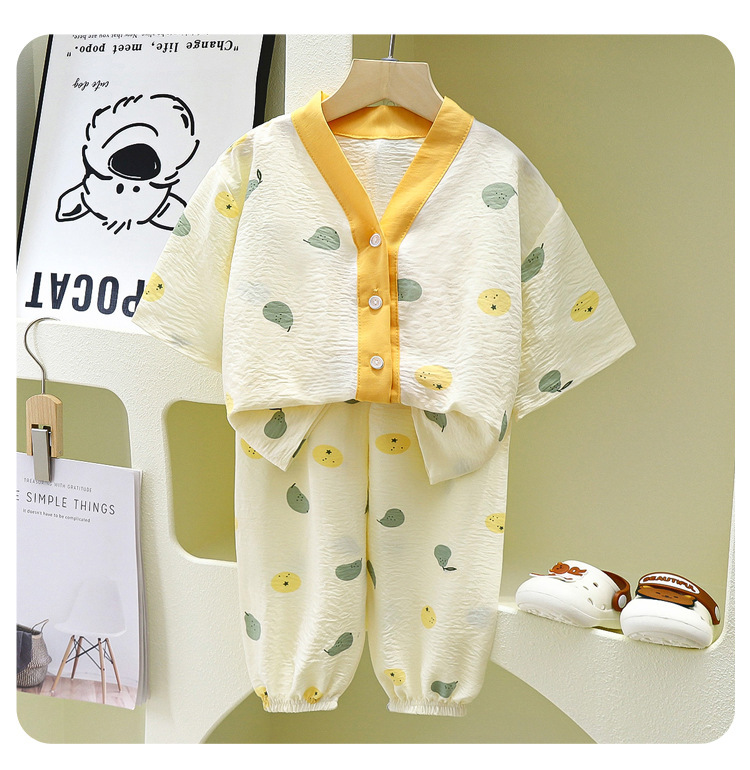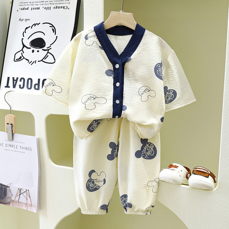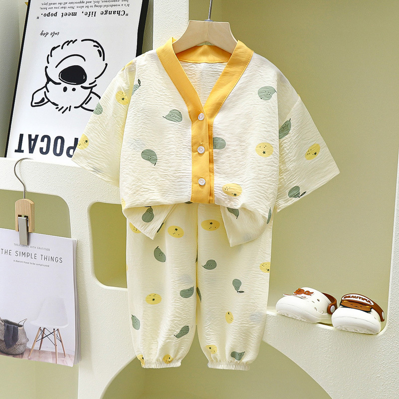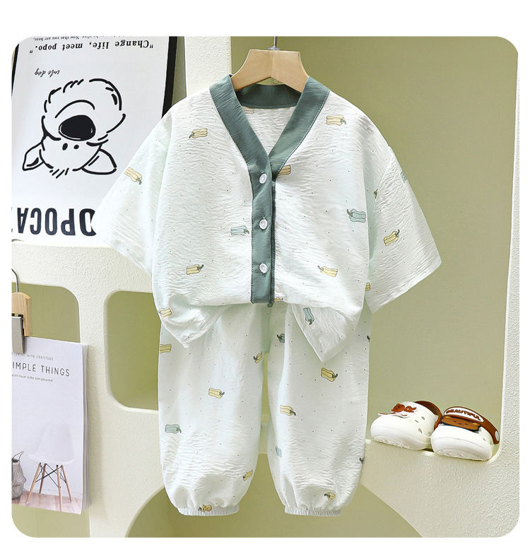 어린이 집 옷 파자마 얇은 카디건 흐린 코튼 소년과 소녀 잠옷 세트 7 점 소매 투피스 아동복스토어 가기