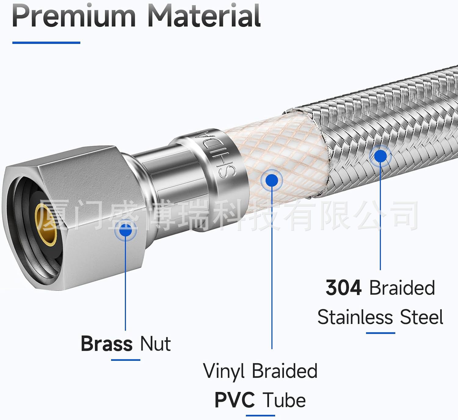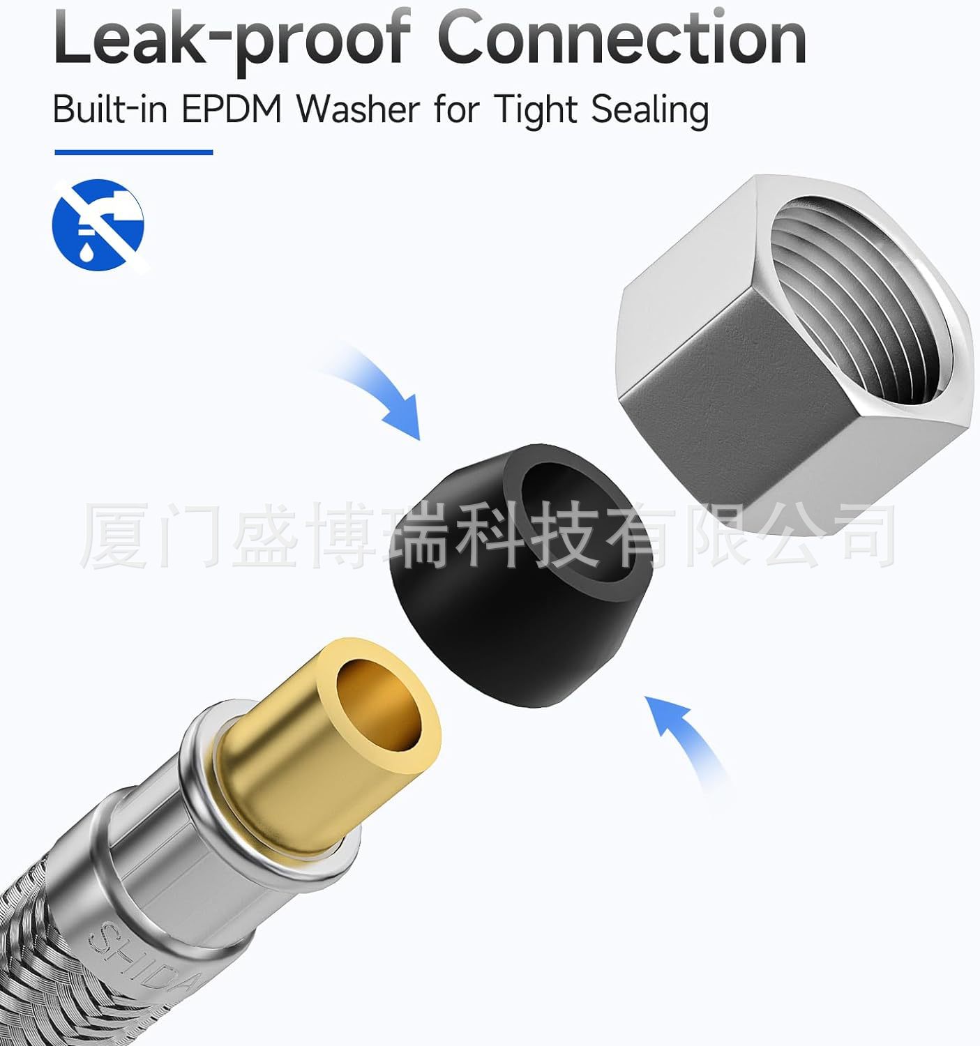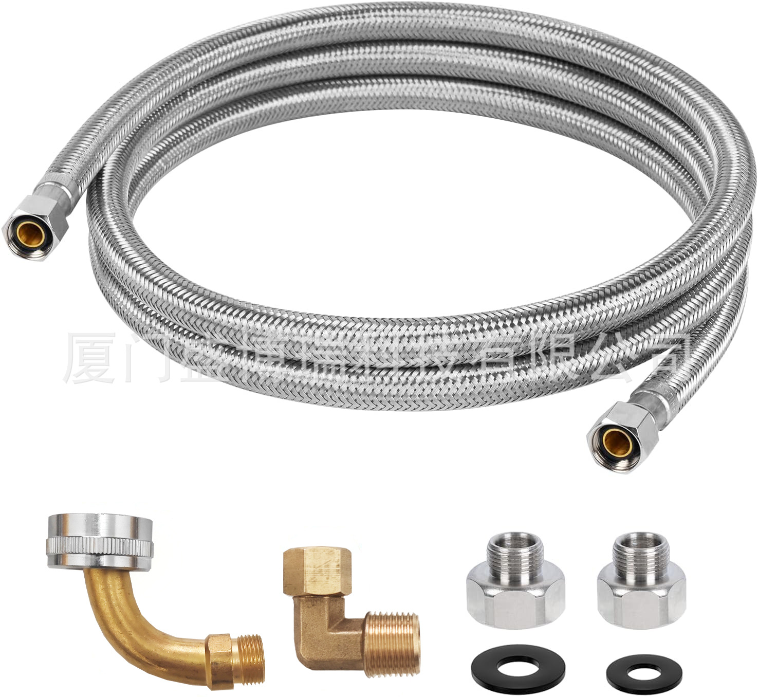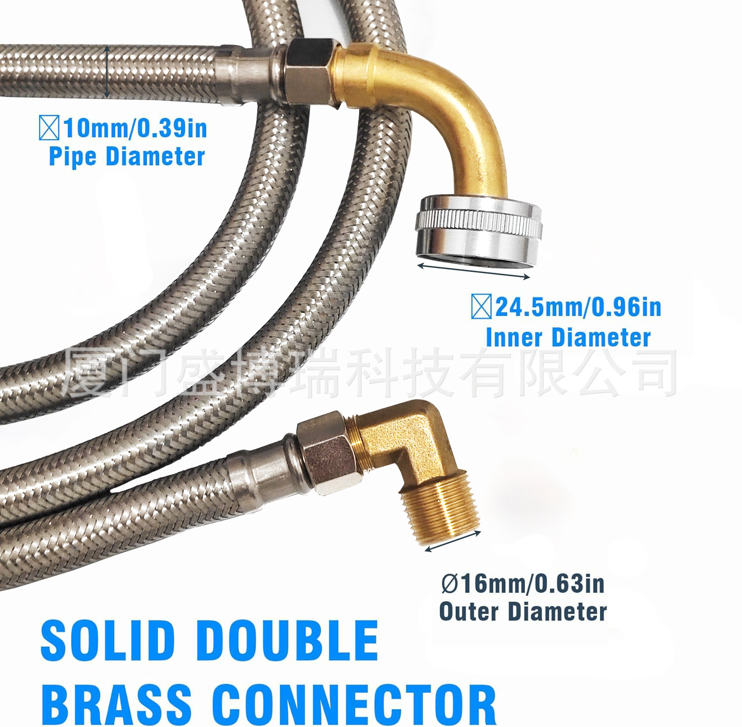 90 도 팔꿈치 커넥터가있는 국경 간 식기 세척기 설치 키트 폭발 방지 물 공급 라인 스테인레스 스틸 튜브 황동 너트