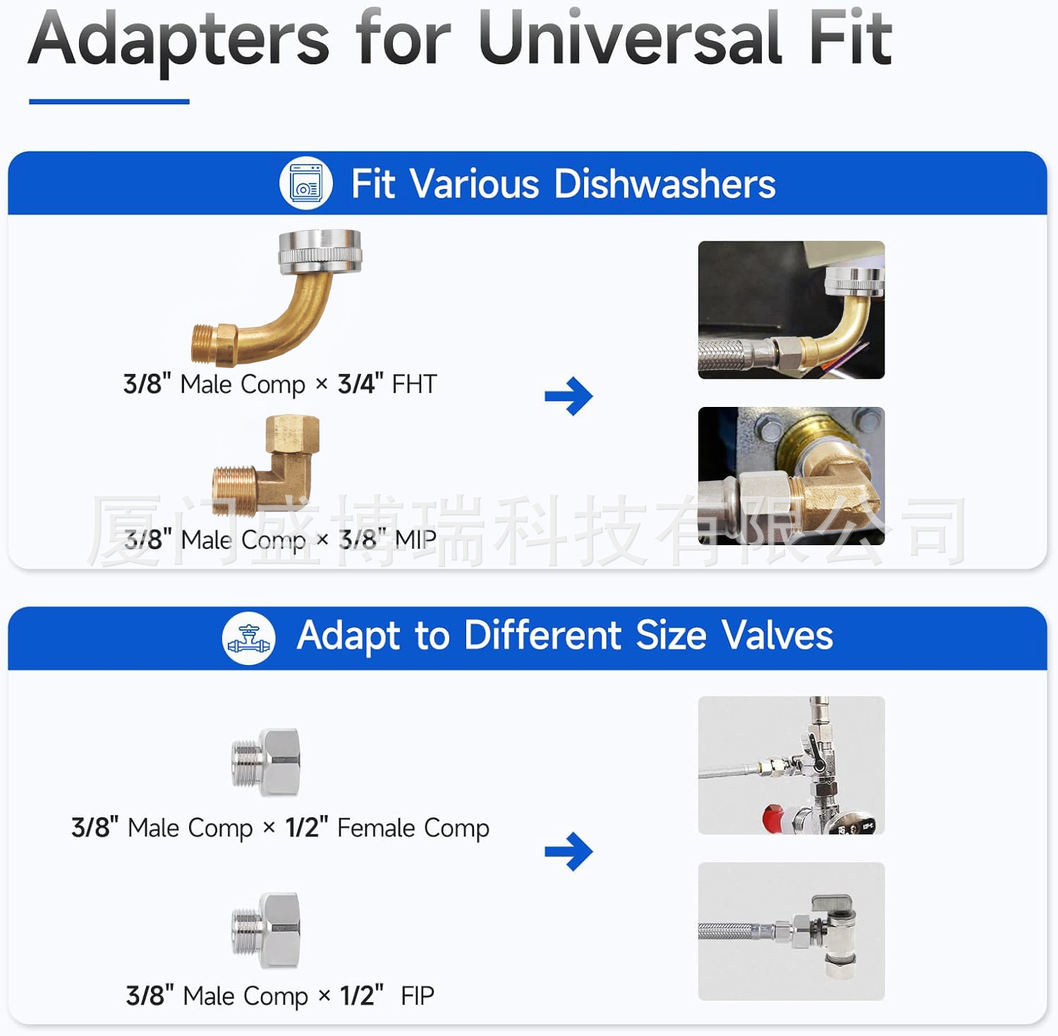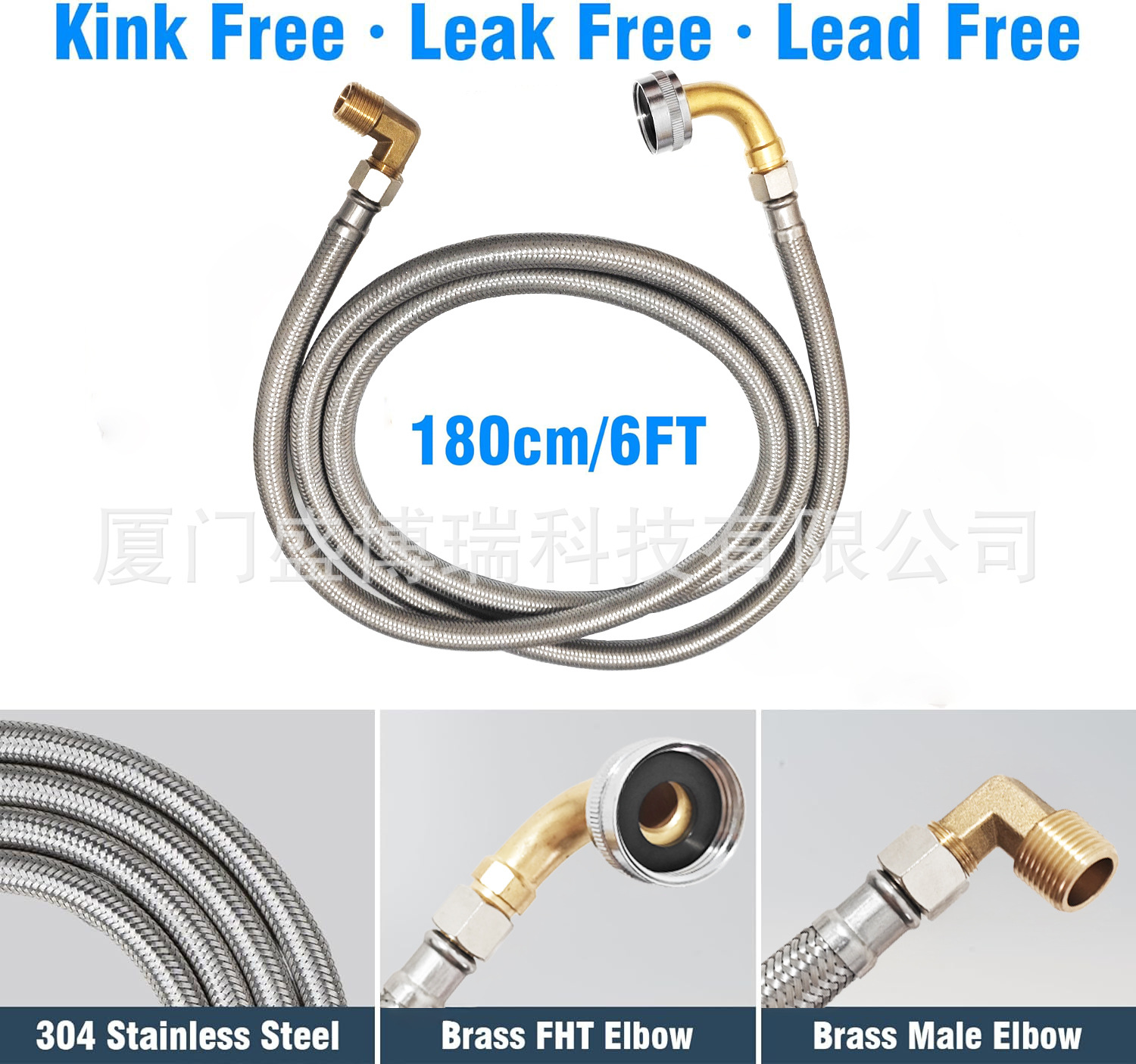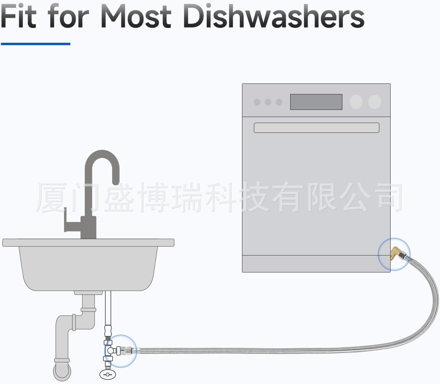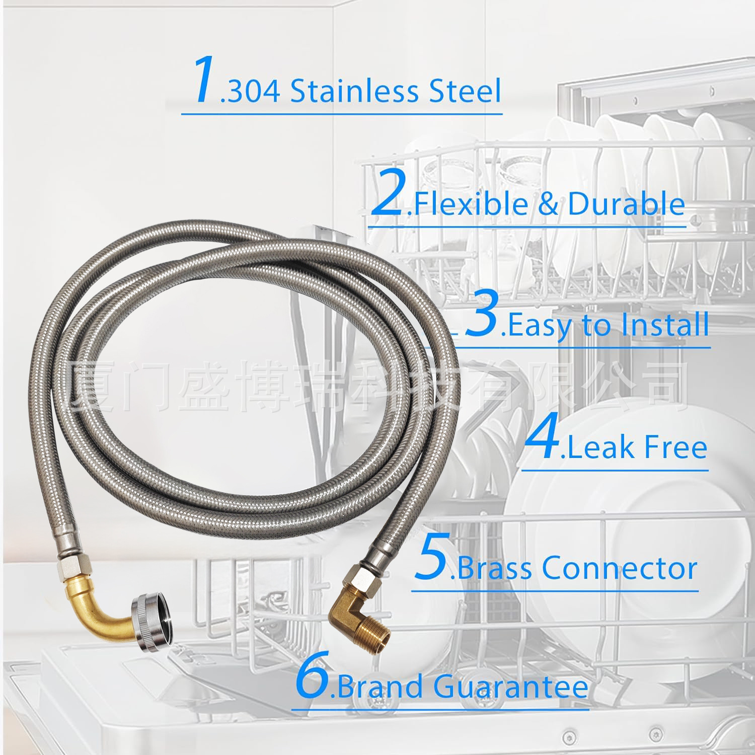90 도 팔꿈치 커넥터가있는 국경 간 식기 세척기 설치 키트 폭발 방지 물 공급 라인 스테인레스 스틸 튜브 황동 너트스토어 가기