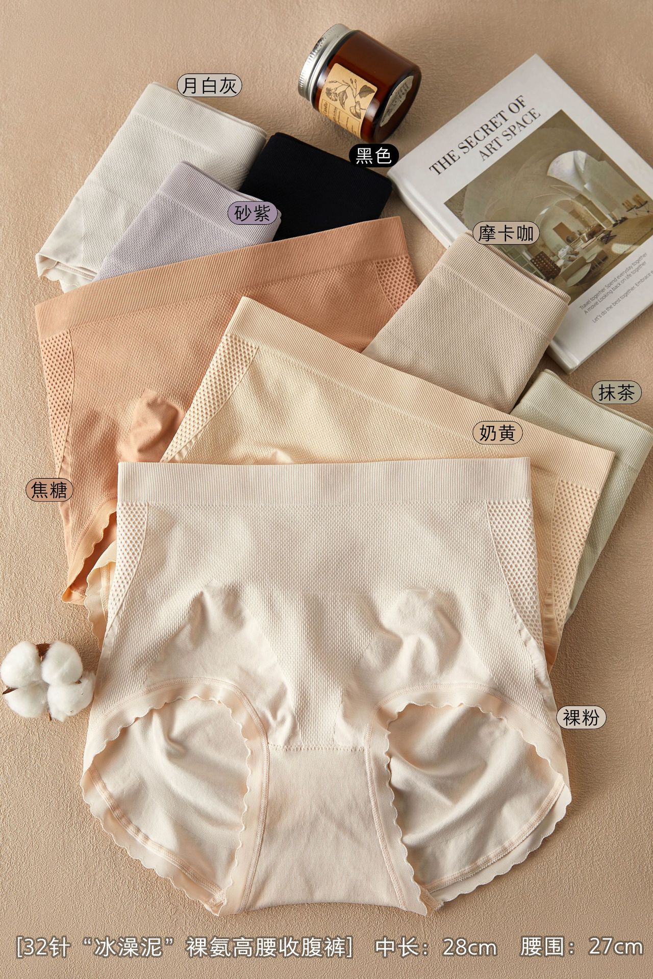 7A 실크 항균 고 허리 복부 팬티 여성 쿨 센스 아이스 실크 워터 조류 진흙 32 바늘 알몸 암모니아 니트 통기성 반바지