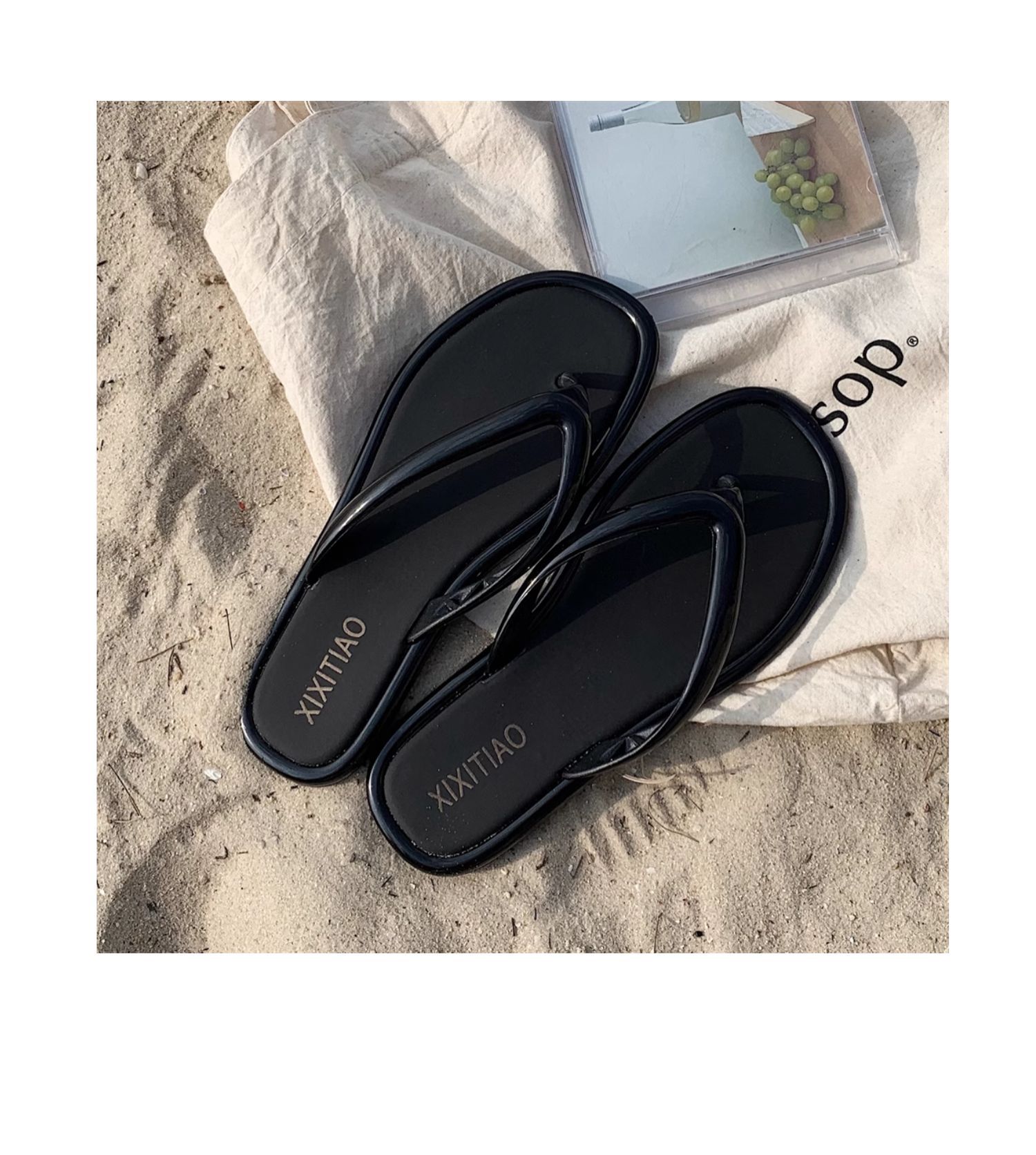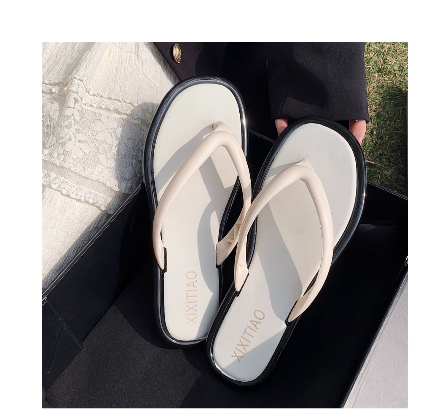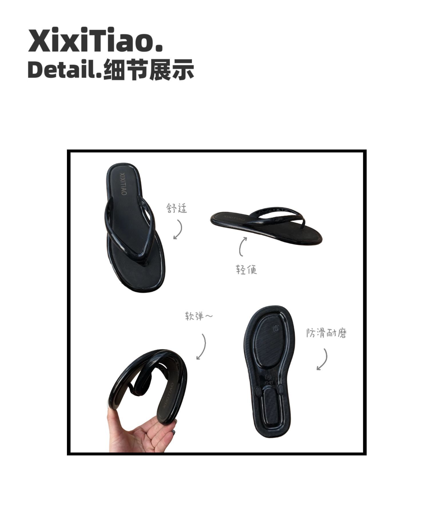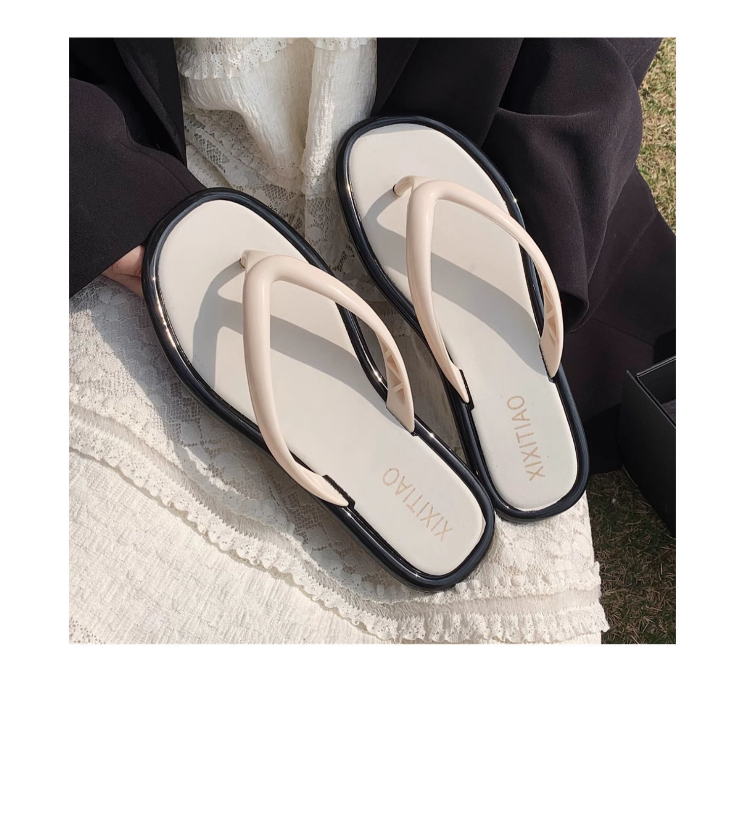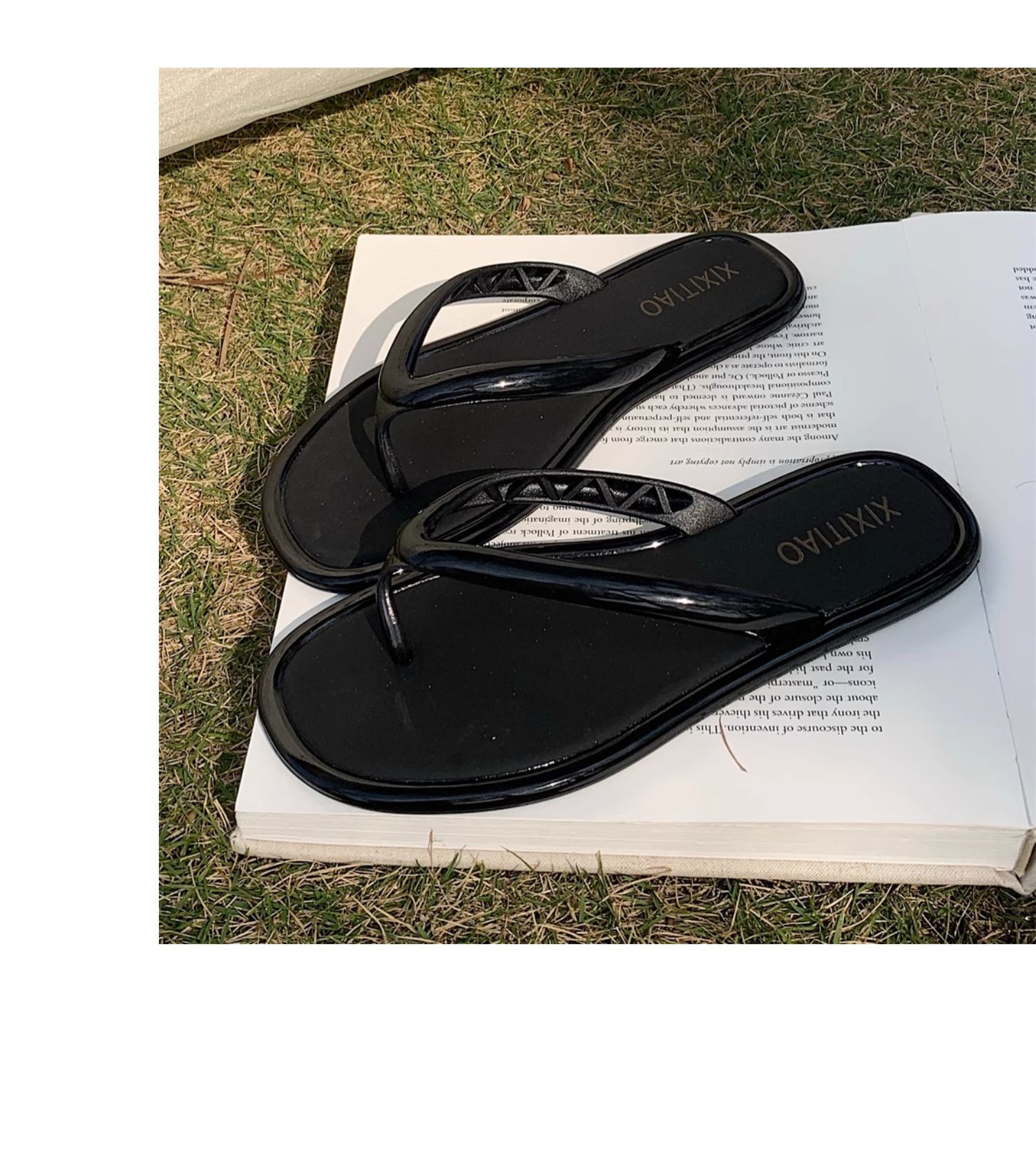 2024 여름 새로운 소녀 프랑스 스타일 하이 엔드 플랫 사이버 연예인 콘트라스트 인 스타일 간단한 플립 플롭 슬리퍼