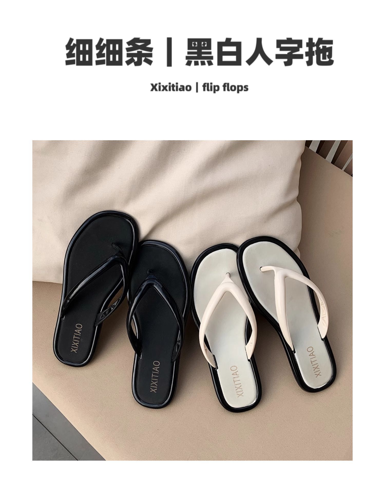 2024 여름 새로운 소녀 프랑스 스타일 하이 엔드 플랫 사이버 연예인 콘트라스트 인 스타일 간단한 플립 플롭 슬리퍼스토어 가기