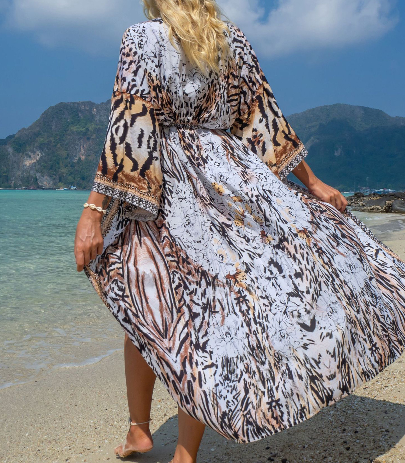 해변 블라우스 포지셔닝 레이온 휴일 긴 카디건 자외선 차단제 국경 아마존 원피스 느슨한 피팅스토어 가기
