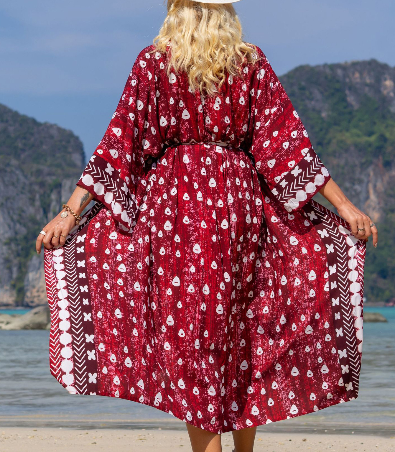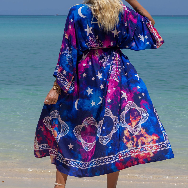 해변 블라우스 포지셔닝 레이온 휴일 긴 카디건 자외선 차단제 국경 아마존 원피스 느슨한 피팅