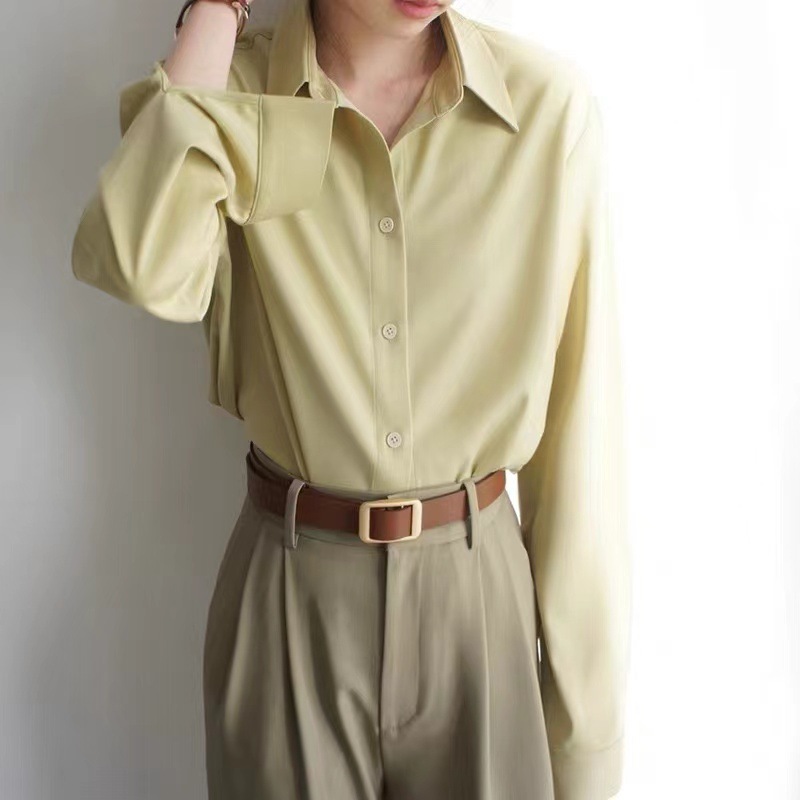 JOJOZ 우유 녹색 긴 소매 셔츠 캐주얼 탑 루즈 신선한 세련된 부드러운 새틴 벨벳 24 년 봄 새로운