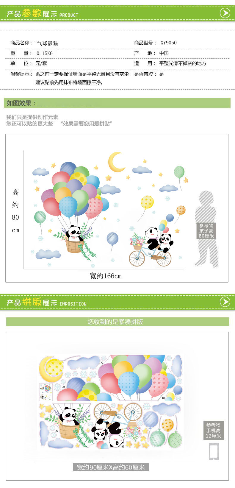 만화 곰 풍선 어린이 방 벽 스티커 벽 장식 레이아웃 귀여운 벽 스티커 벽 그림 XY9050스토어 가기