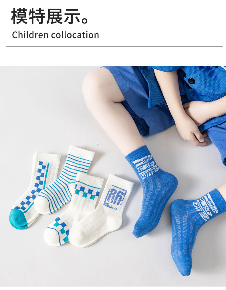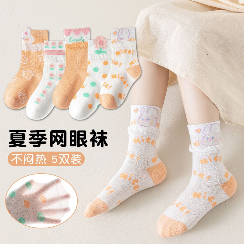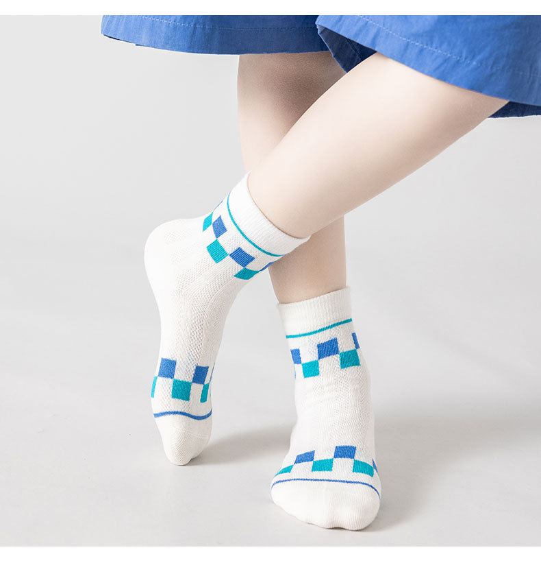 봄과 여름 소년과 소녀를위한 새로운 어린이 메쉬 스포츠 양말, 중대형 어린이를위한 면 중간 튜브 유행 양말, 통기성 초등학교 양말 도매