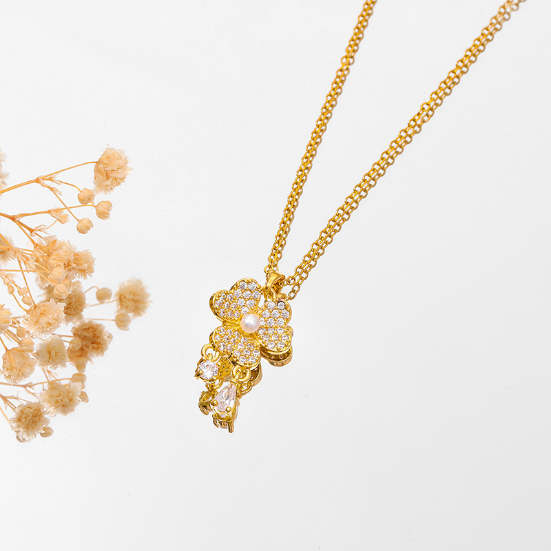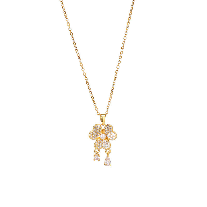 티타늄 스틸 패션 3 꽃잎 잔디 진주 술 목걸이 여성의 우아한 올 매치 라이트 럭셔리 칼라 본 체인 액세서리 구리 펜던트 틈새스토어 가기