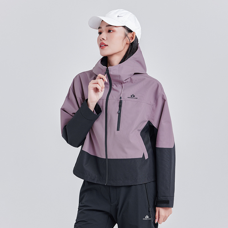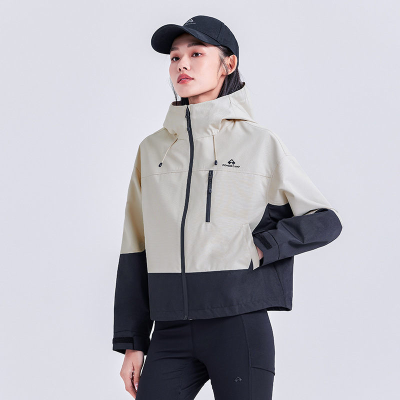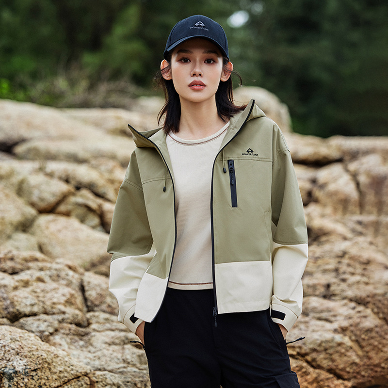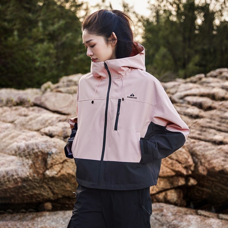 트레이너 봄 야외 스포츠 캐주얼 재킷 여성의 느슨한 후드 컬러 블록 하이킹 등반 세트 여성 짧은 재킷