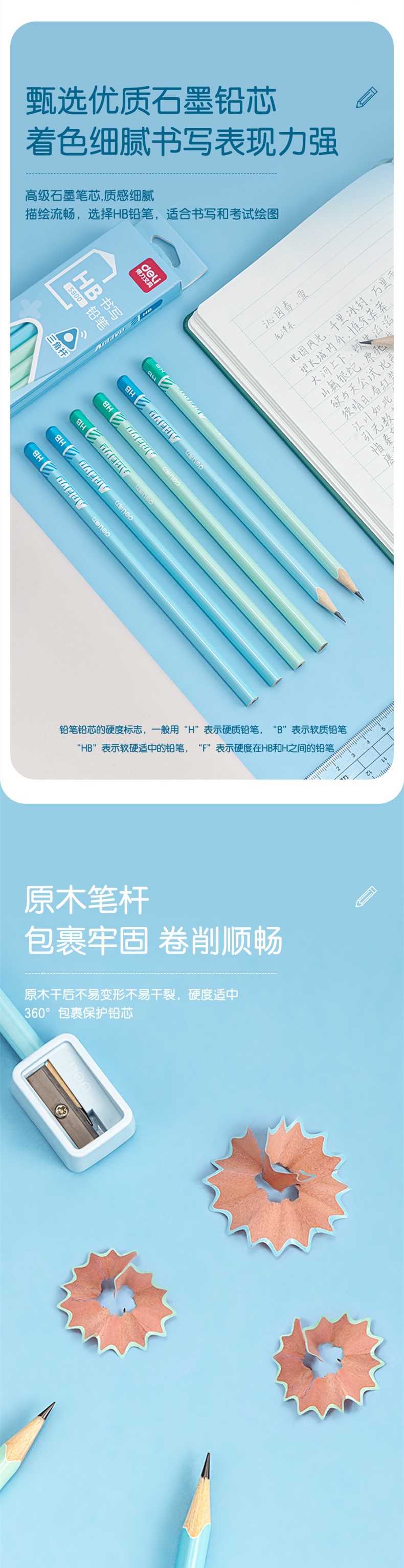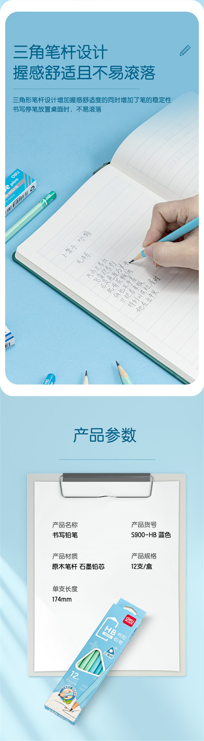 델리 S900 연필 HB 삼각형 컬러 연필 어린이 학생 쓰기 연습 그림 연필 12 팩스토어 가기