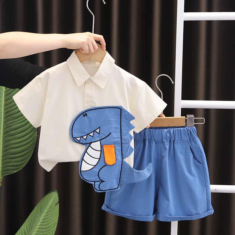 대외 무역 소년의 여름 셔츠 세트 2024 새로운 스타일 웨스턴 스타일 소년의 여름 원피스 만화 반팔 투피스 유행스토어 가기
