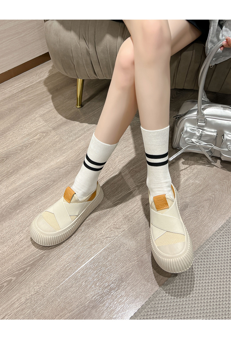 여성 신발 2024 여름 새로운 로우 탑 두꺼운 슬립 온 캐주얼 신발 통기성 플라잉 위빙 유행 여성 스포츠 신발스토어 가기