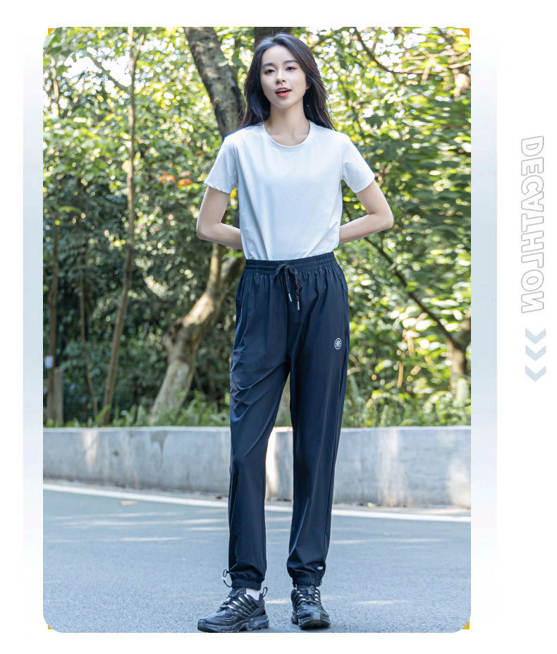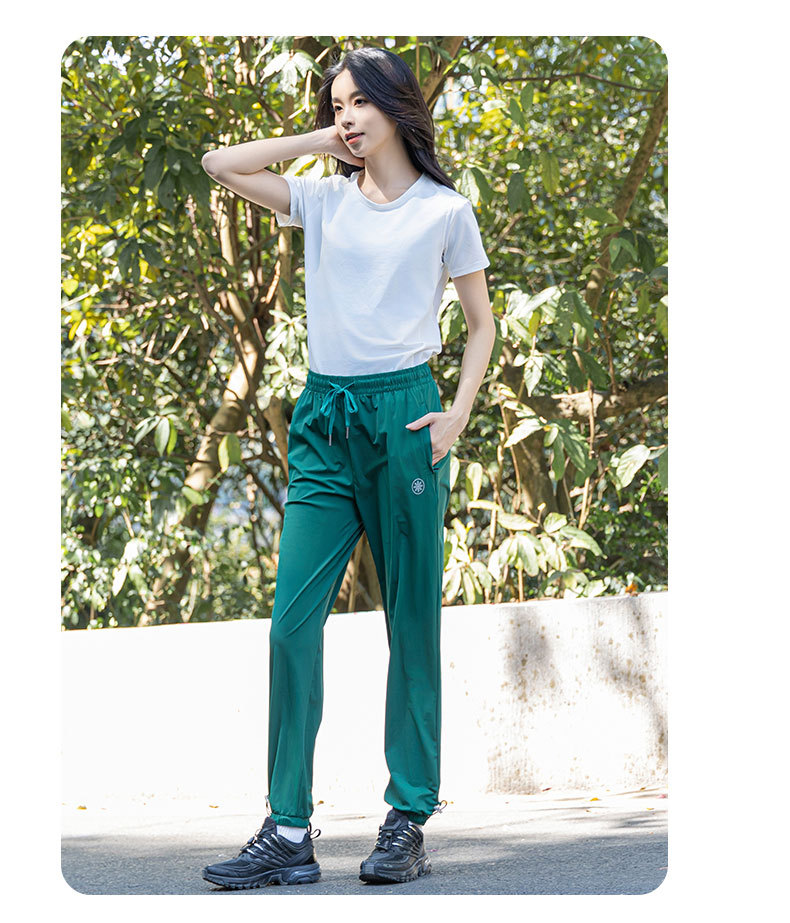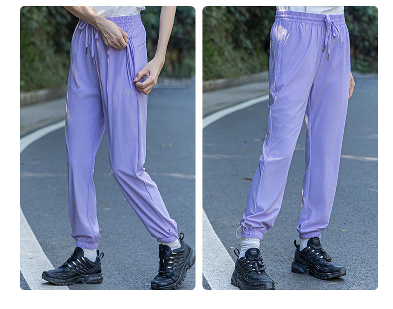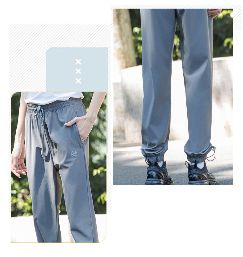 여름 소녀 높은 탄성 얼음 감각 얇은 스포츠 바지 스트레치 캐주얼 야외 빠른 건조 바지 여성용 아이스 실크 오리지널 원사 선 스크린 바지스토어 가기