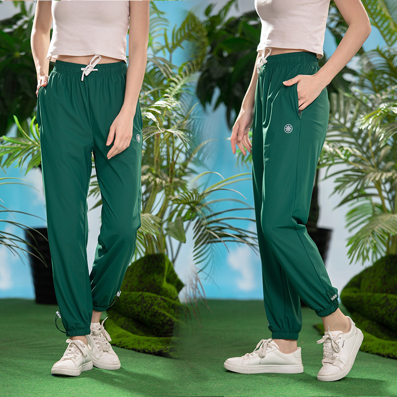 여름 소녀 높은 탄성 얼음 감각 얇은 스포츠 바지 스트레치 캐주얼 야외 빠른 건조 바지 여성용 아이스 실크 오리지널 원사 선 스크린 바지