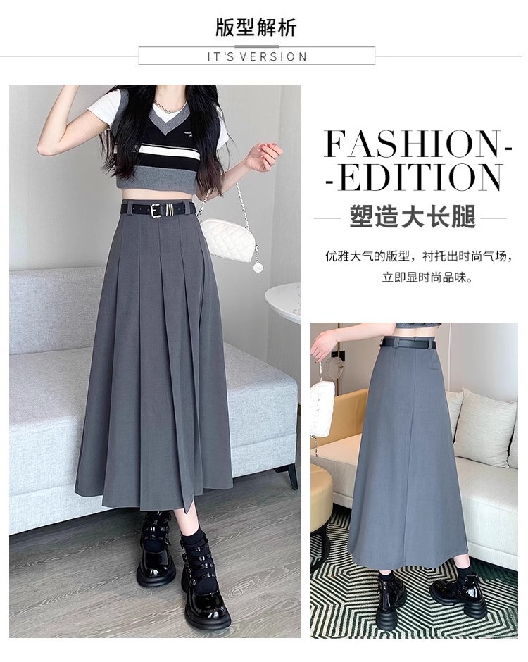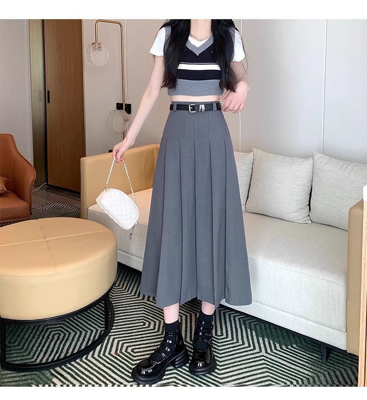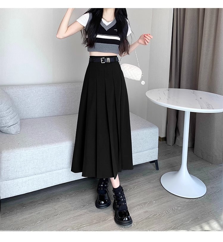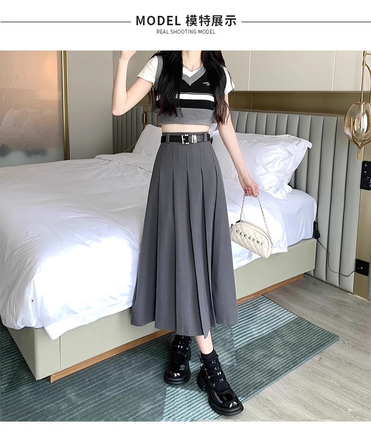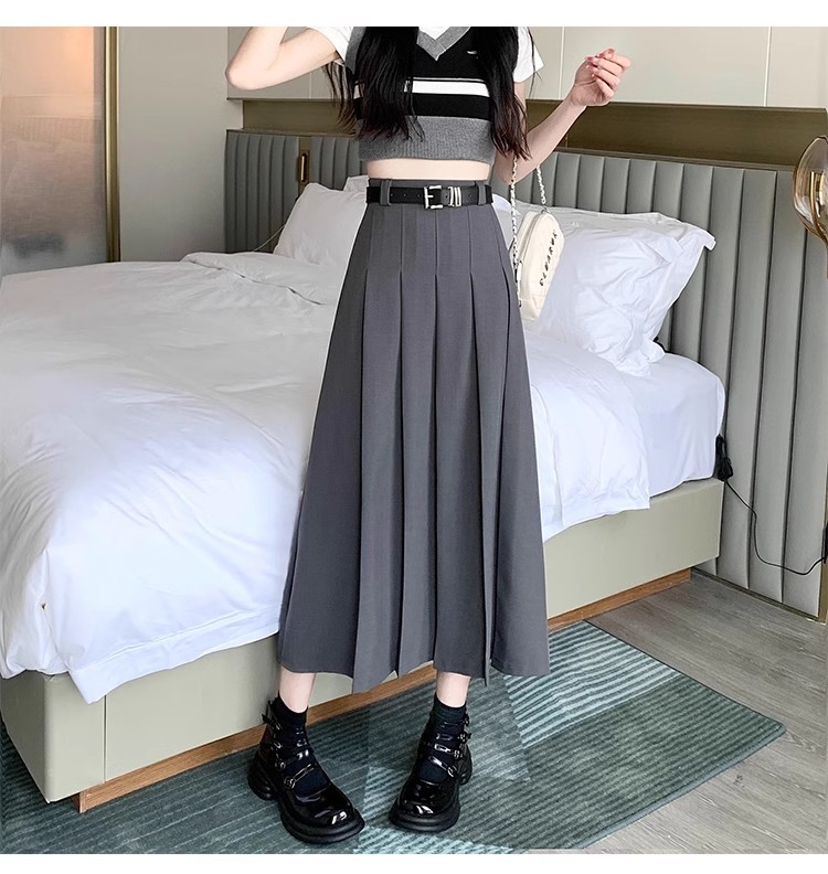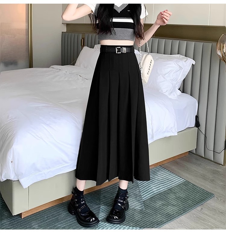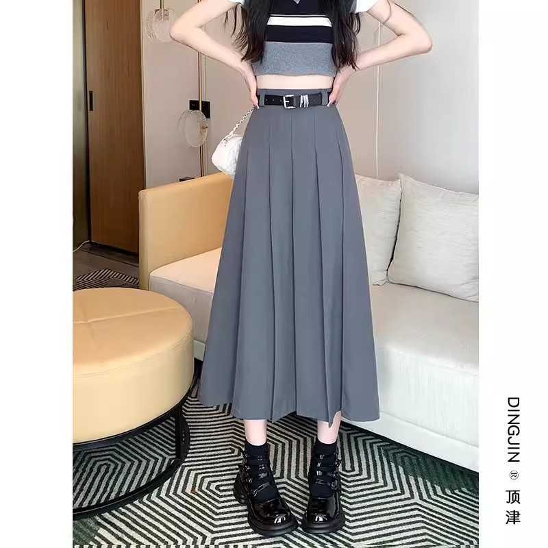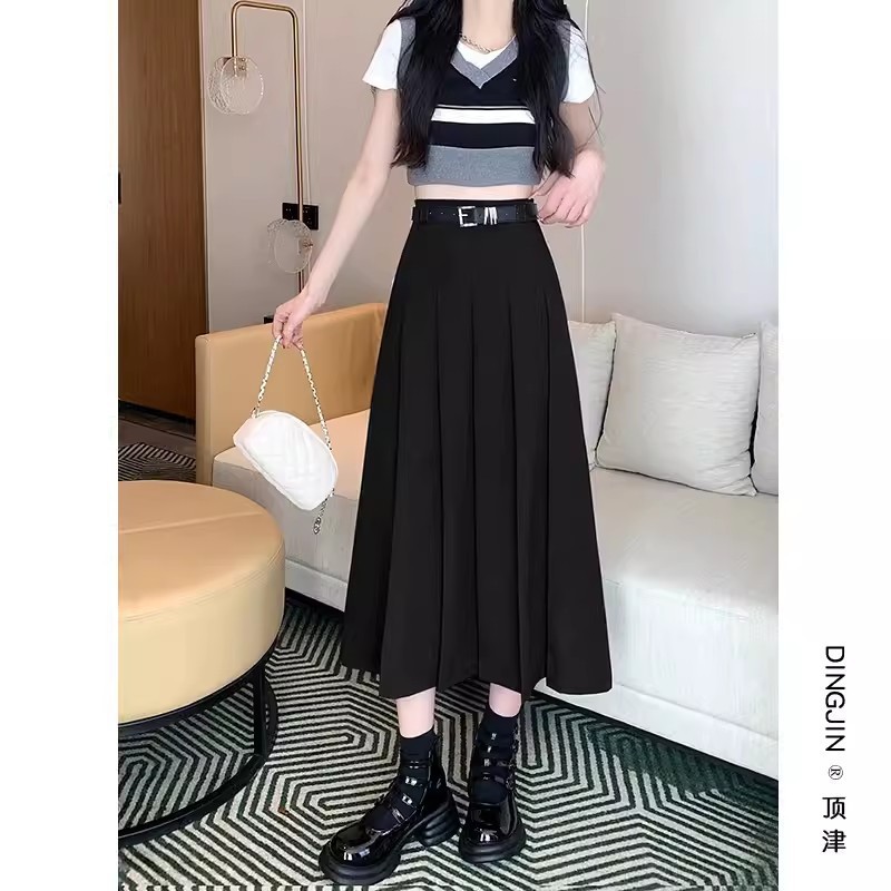 높은 허리 주름 치마 긴 치마 여자 여름 하이 엔드 아름다운 A-워드 슬리밍 학생 세트 무릎 위 스커트 JK스토어 가기