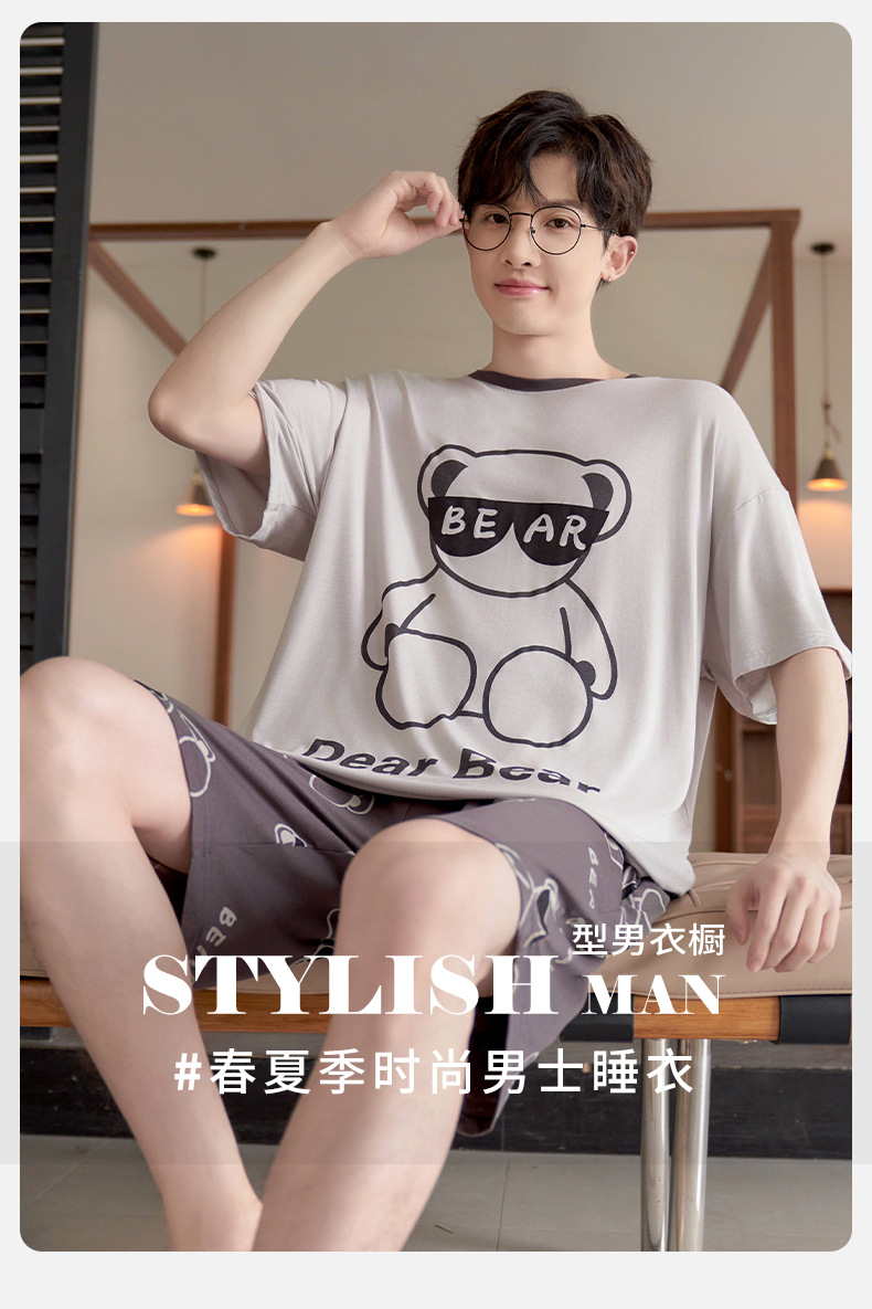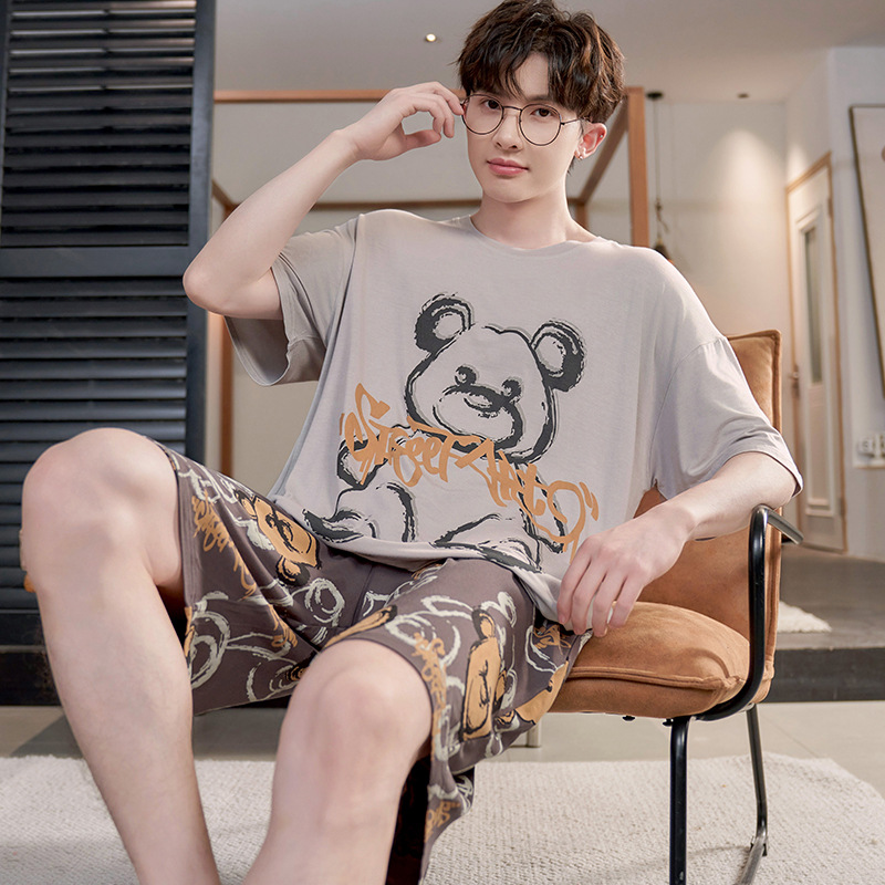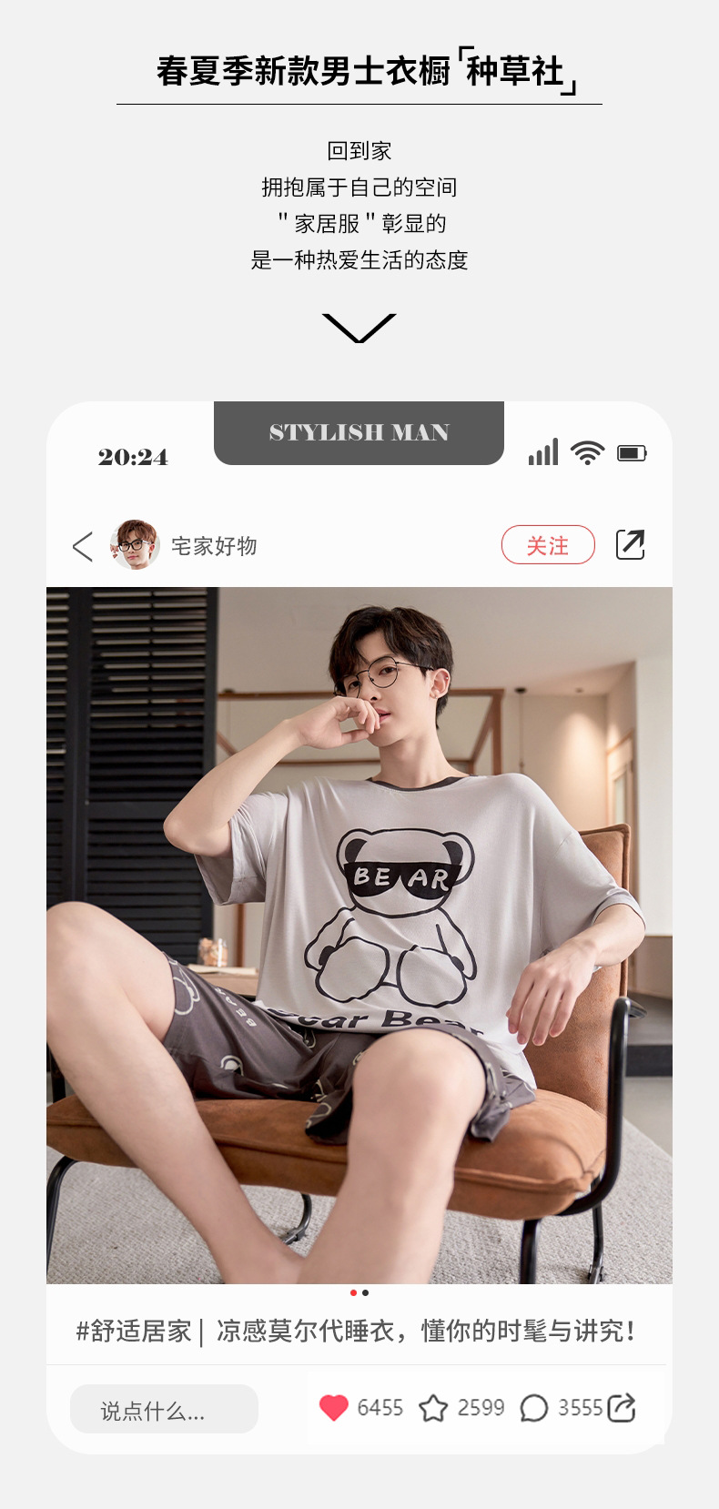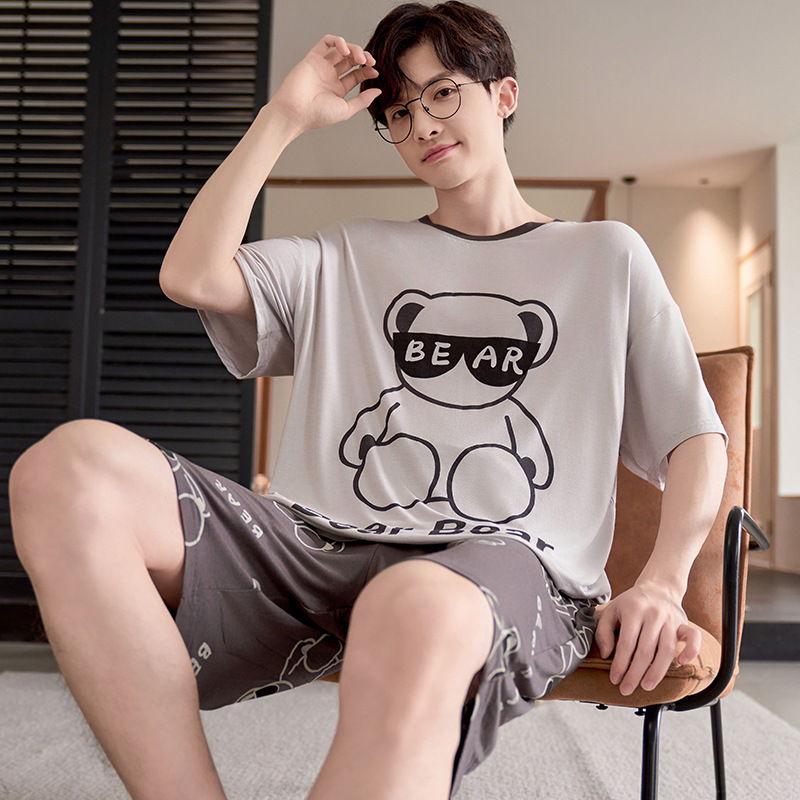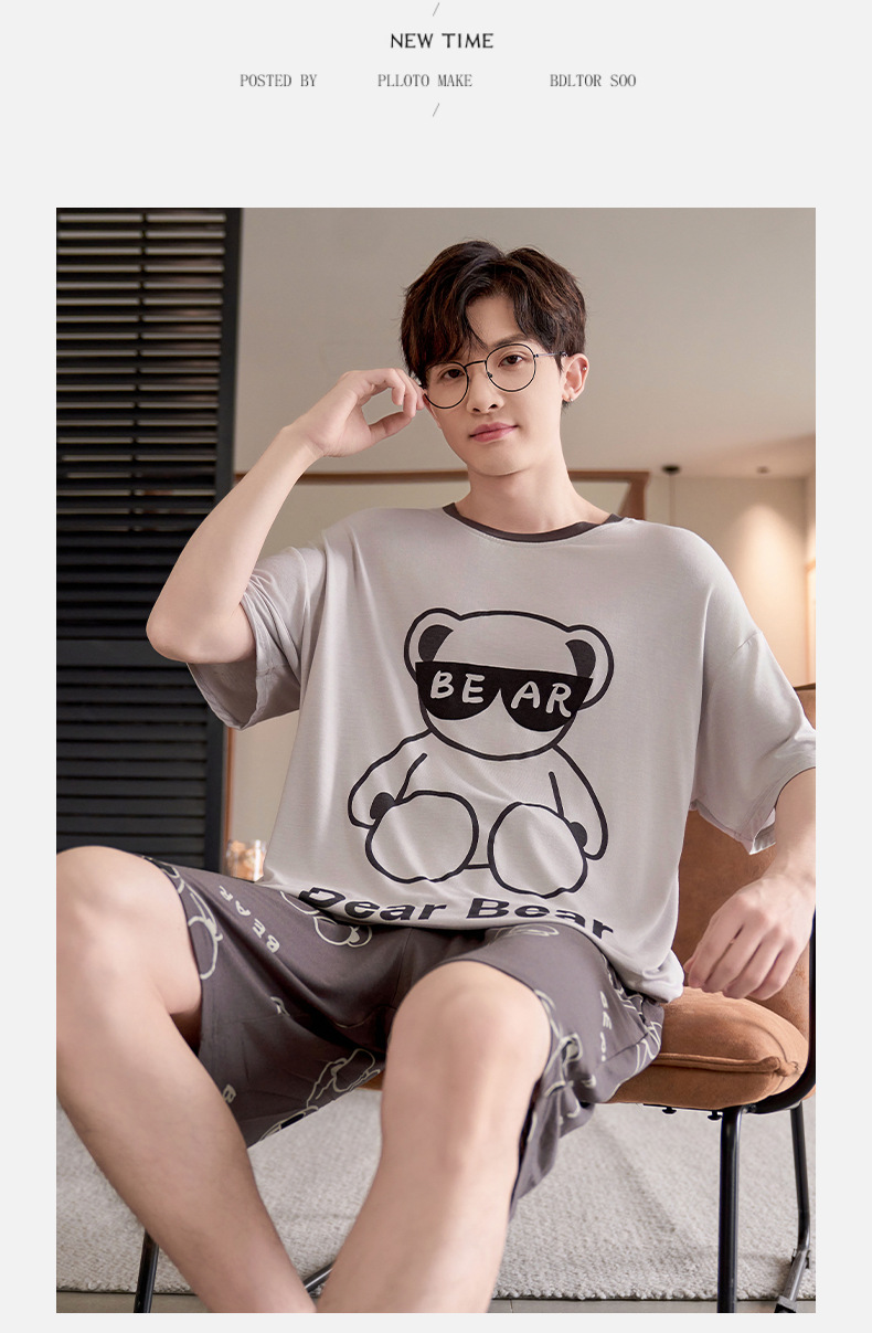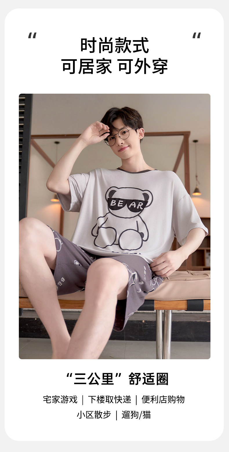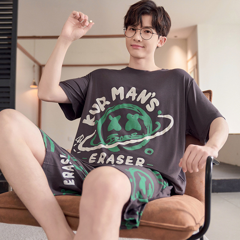 남성 잠옷 여름 반팔 모달 여름 반바지 느슨한 젊은 학생 얇은 대형 홈 옷 세트스토어 가기