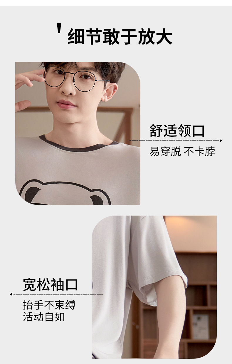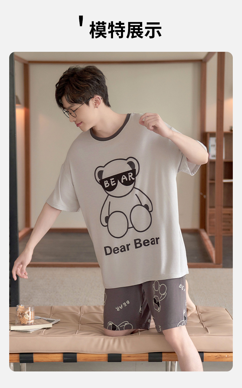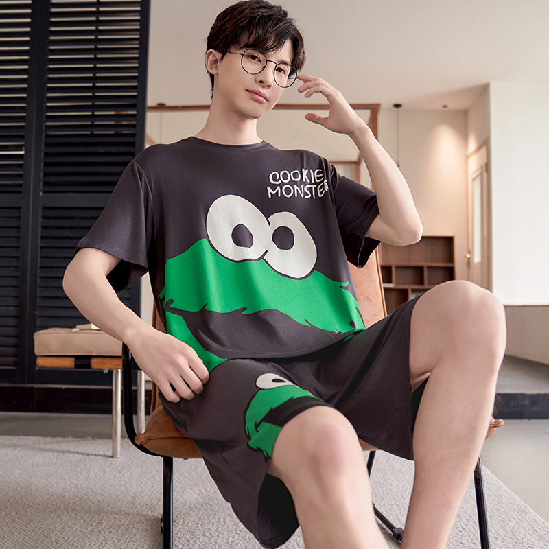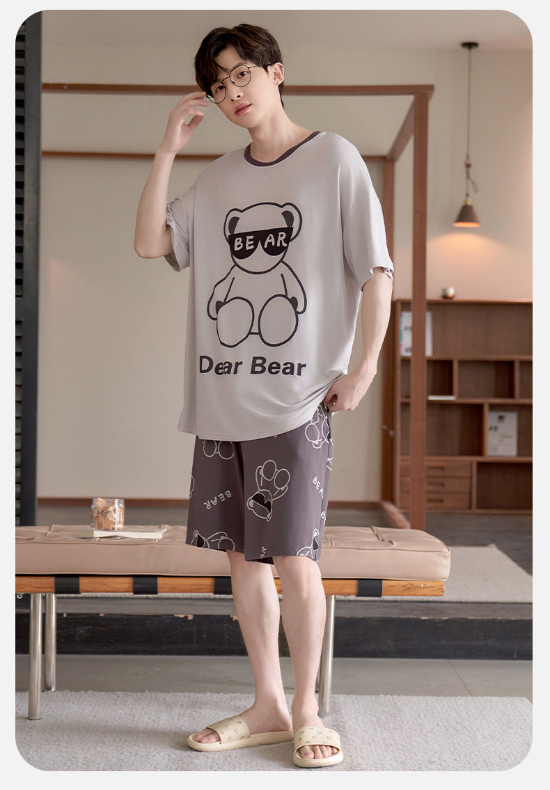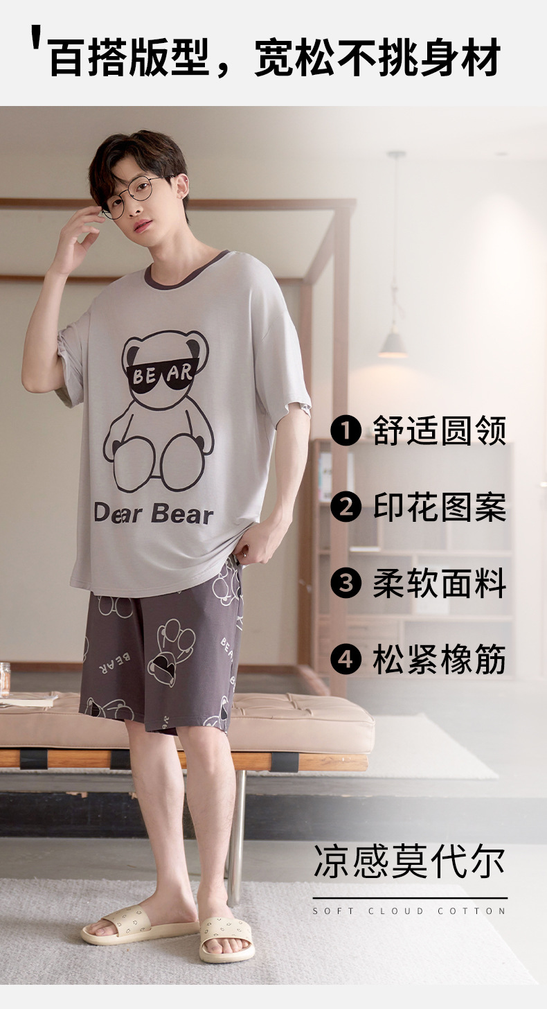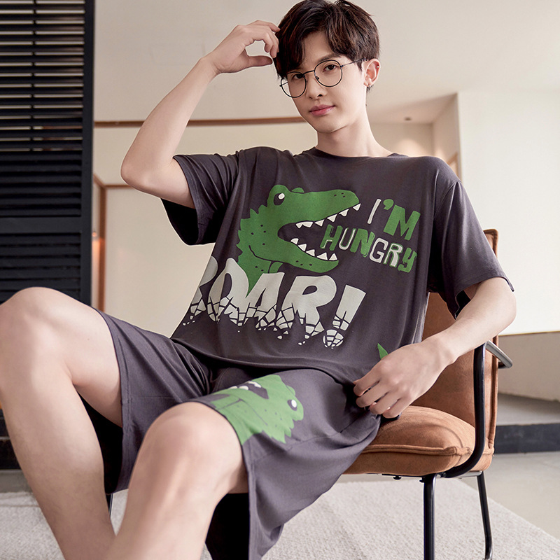 남성 잠옷 여름 반팔 모달 여름 반바지 느슨한 젊은 학생 얇은 대형 홈 옷 세트스토어 가기