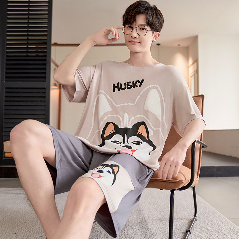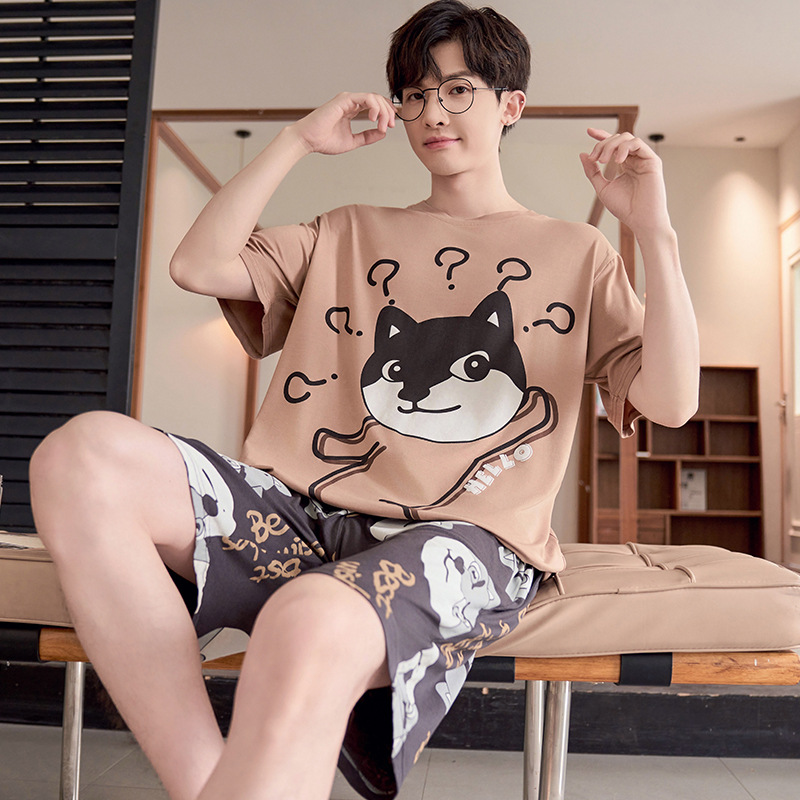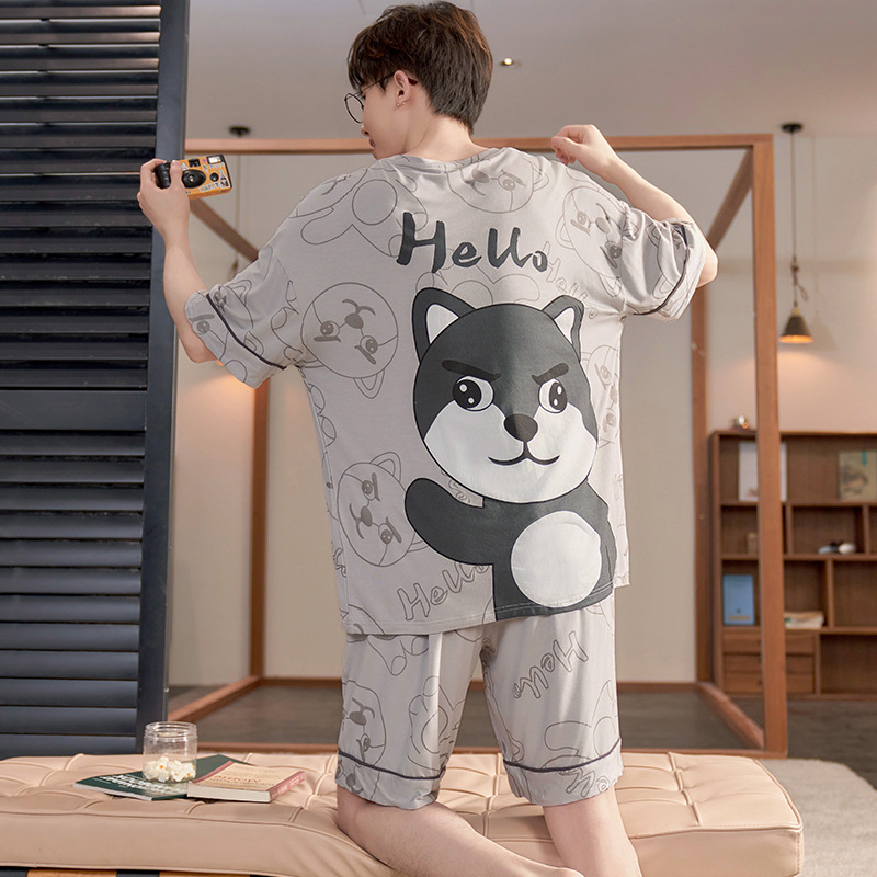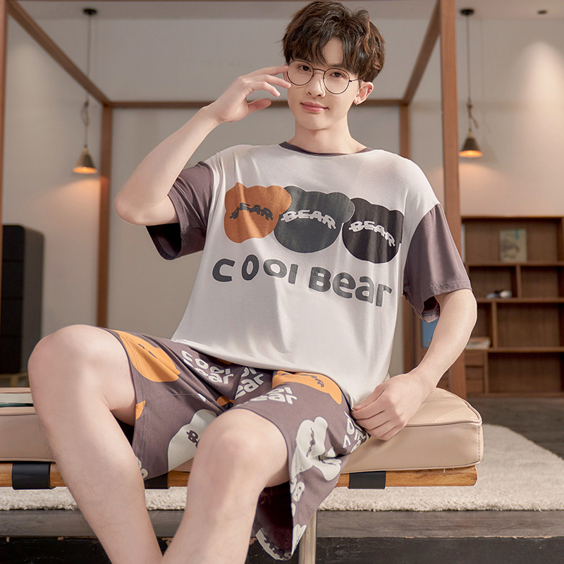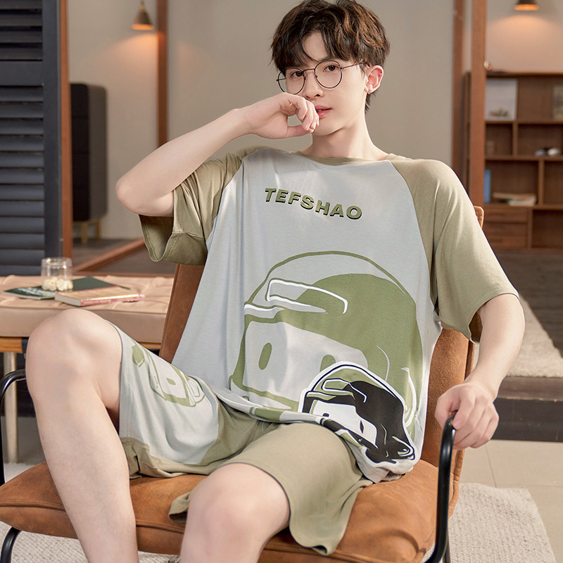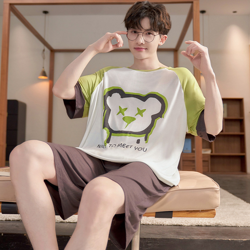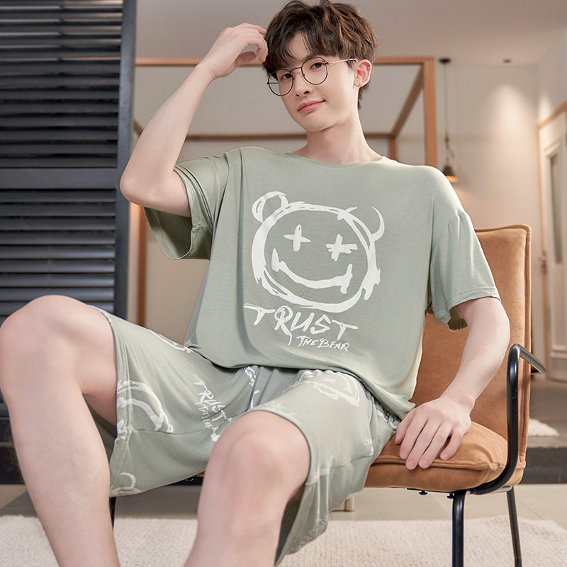 남성 잠옷 여름 반팔 모달 여름 반바지 느슨한 젊은 학생 얇은 대형 홈 옷 세트