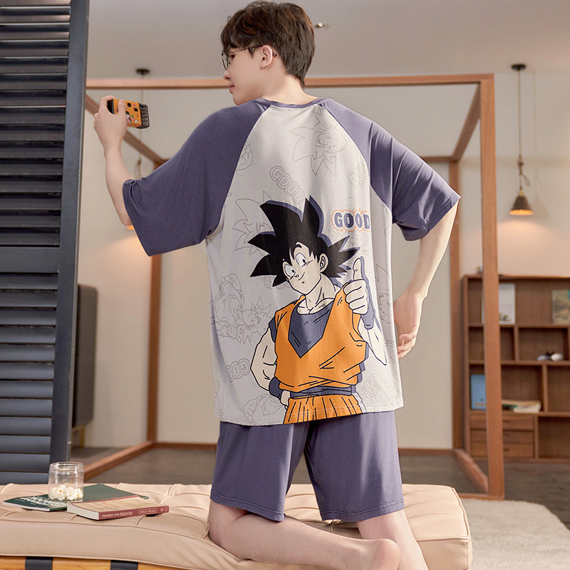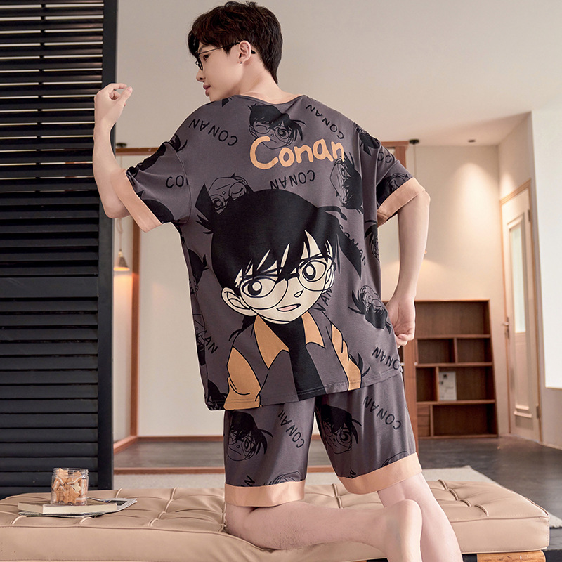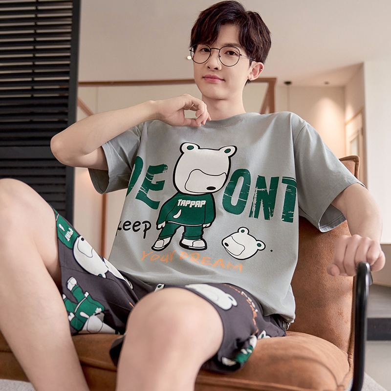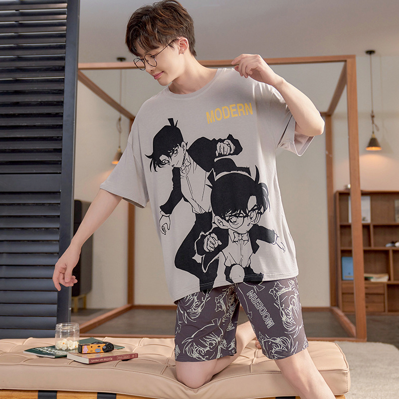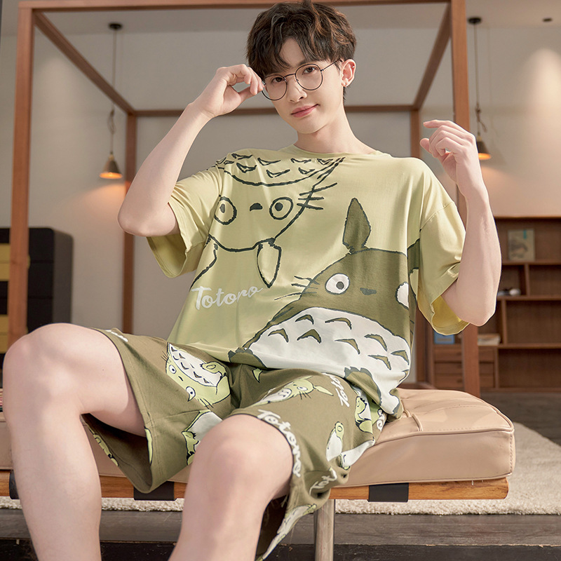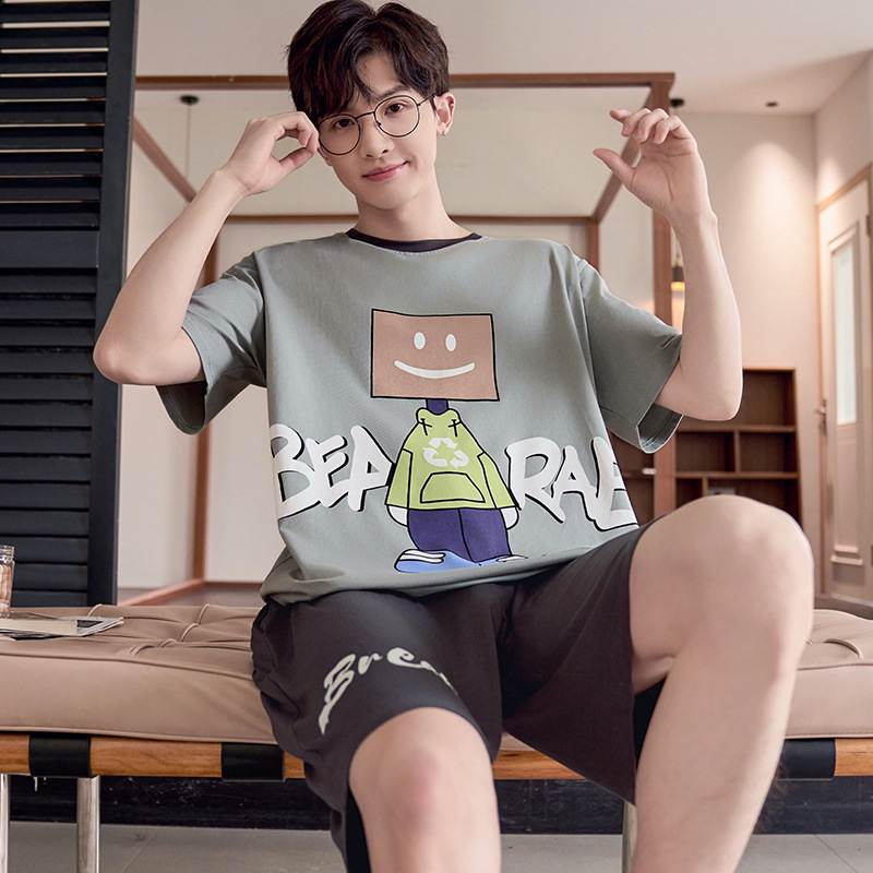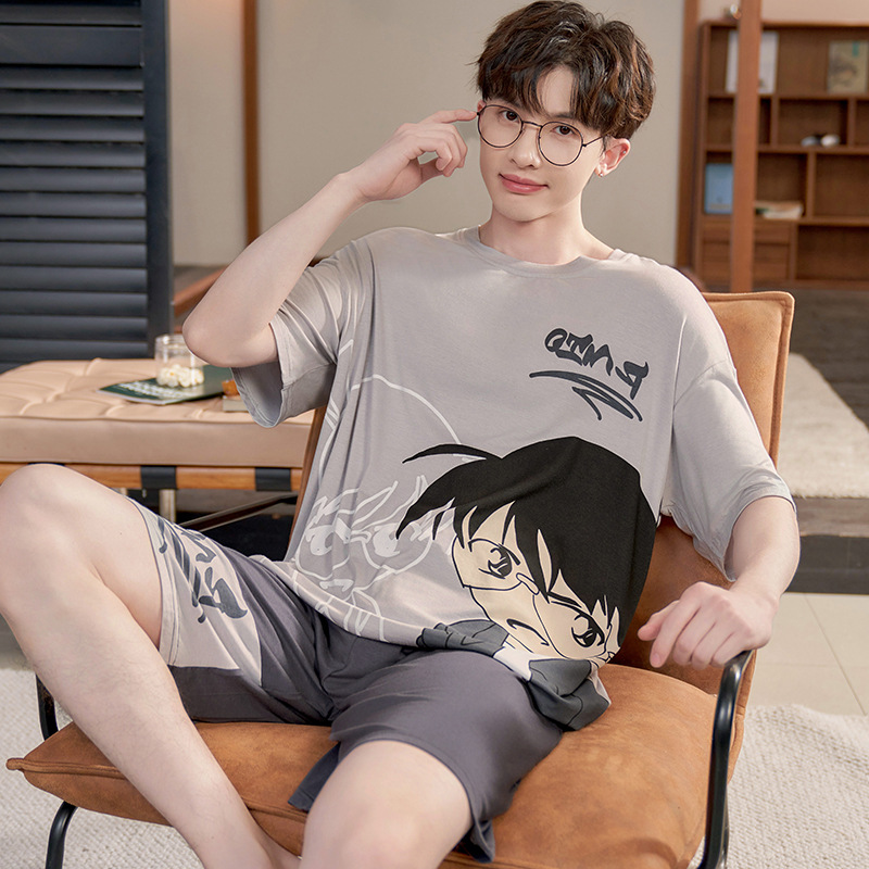 남성 잠옷 여름 반팔 모달 여름 반바지 느슨한 젊은 학생 얇은 대형 홈 옷 세트