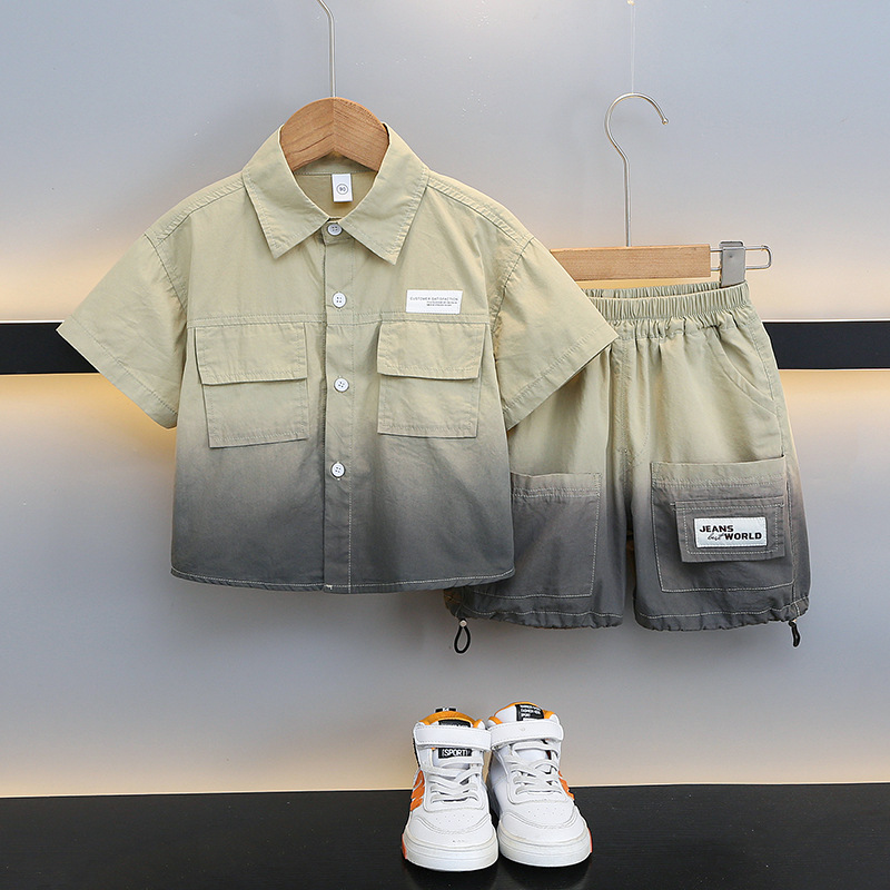 소년 여름 반팔 세트 2025 새로운 쿨 잘 생긴 어린이 한국 셔츠 투피스 아기 얇은 옷