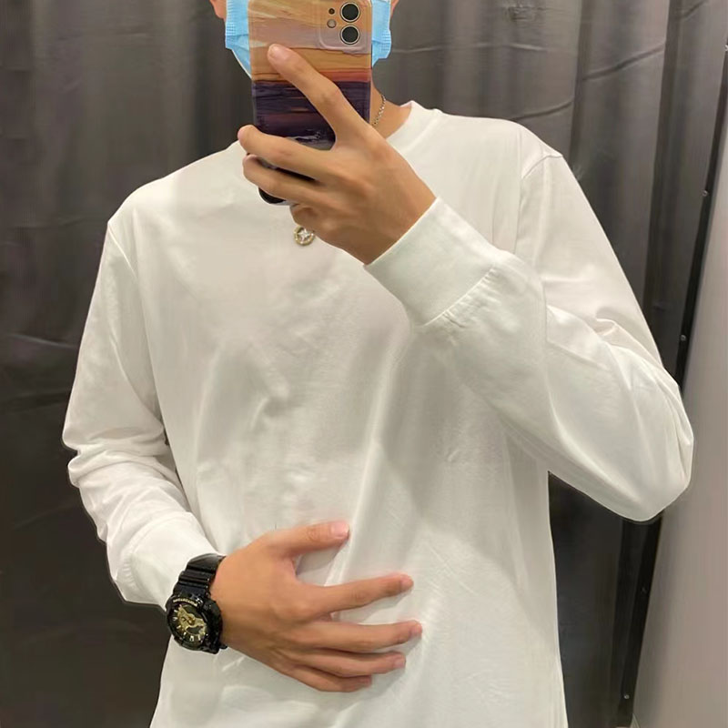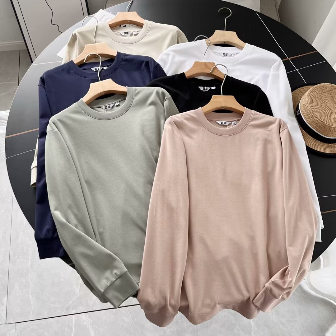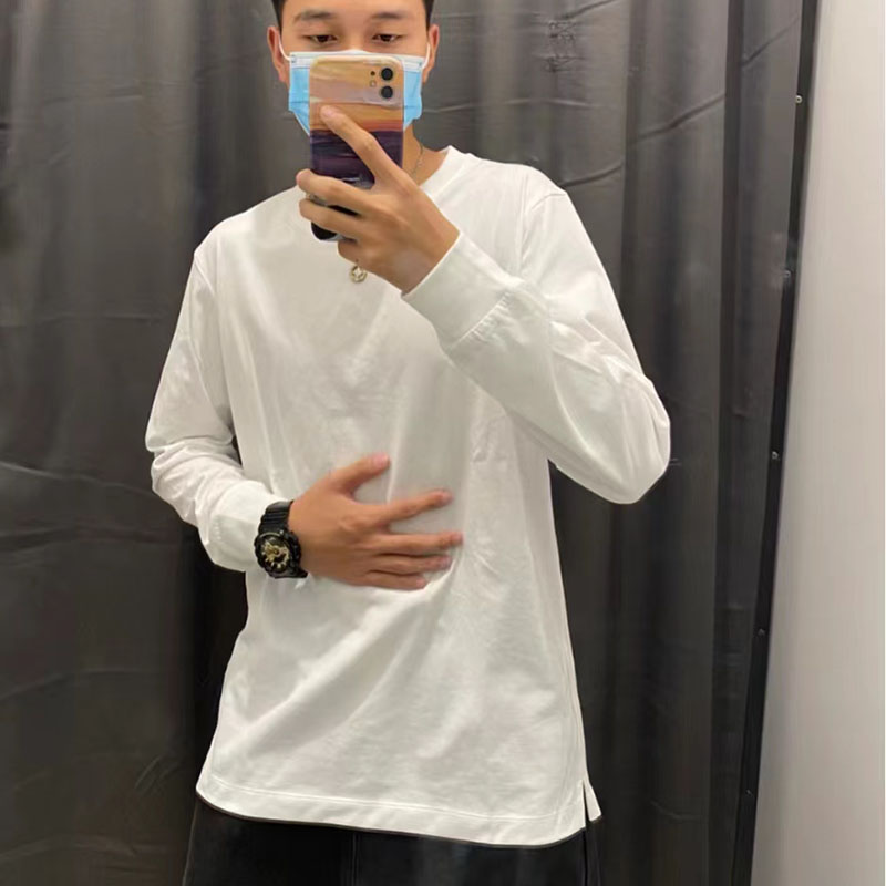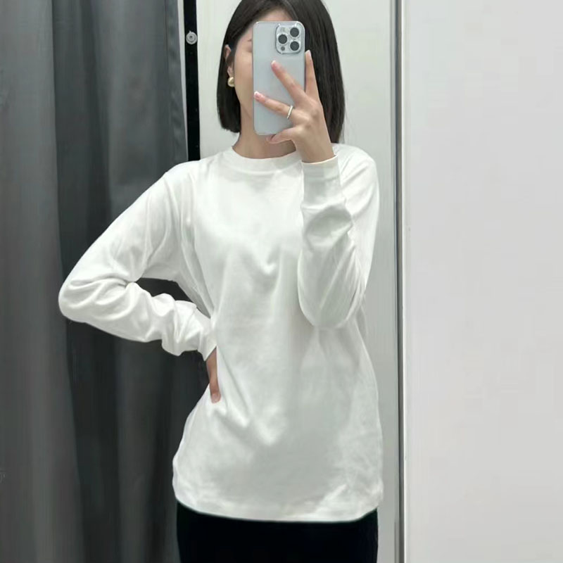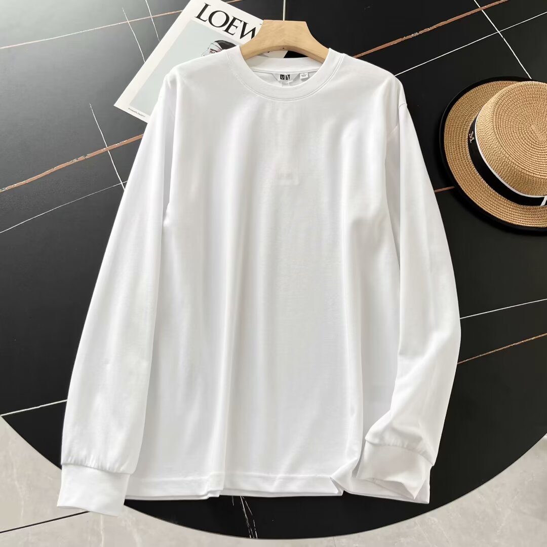 피팅 룸 2024 봄과 여름 새로운 남성/여성 코튼 혼합 느슨한 둥근 목 긴 소매베이스 셔츠 티셔츠 465193스토어 가기