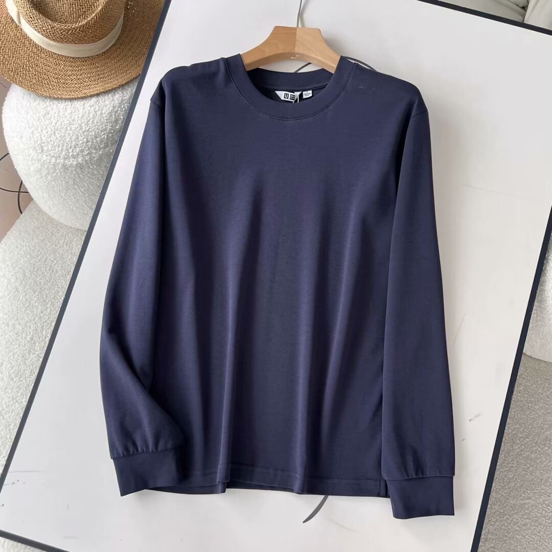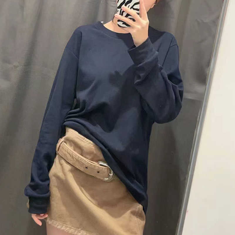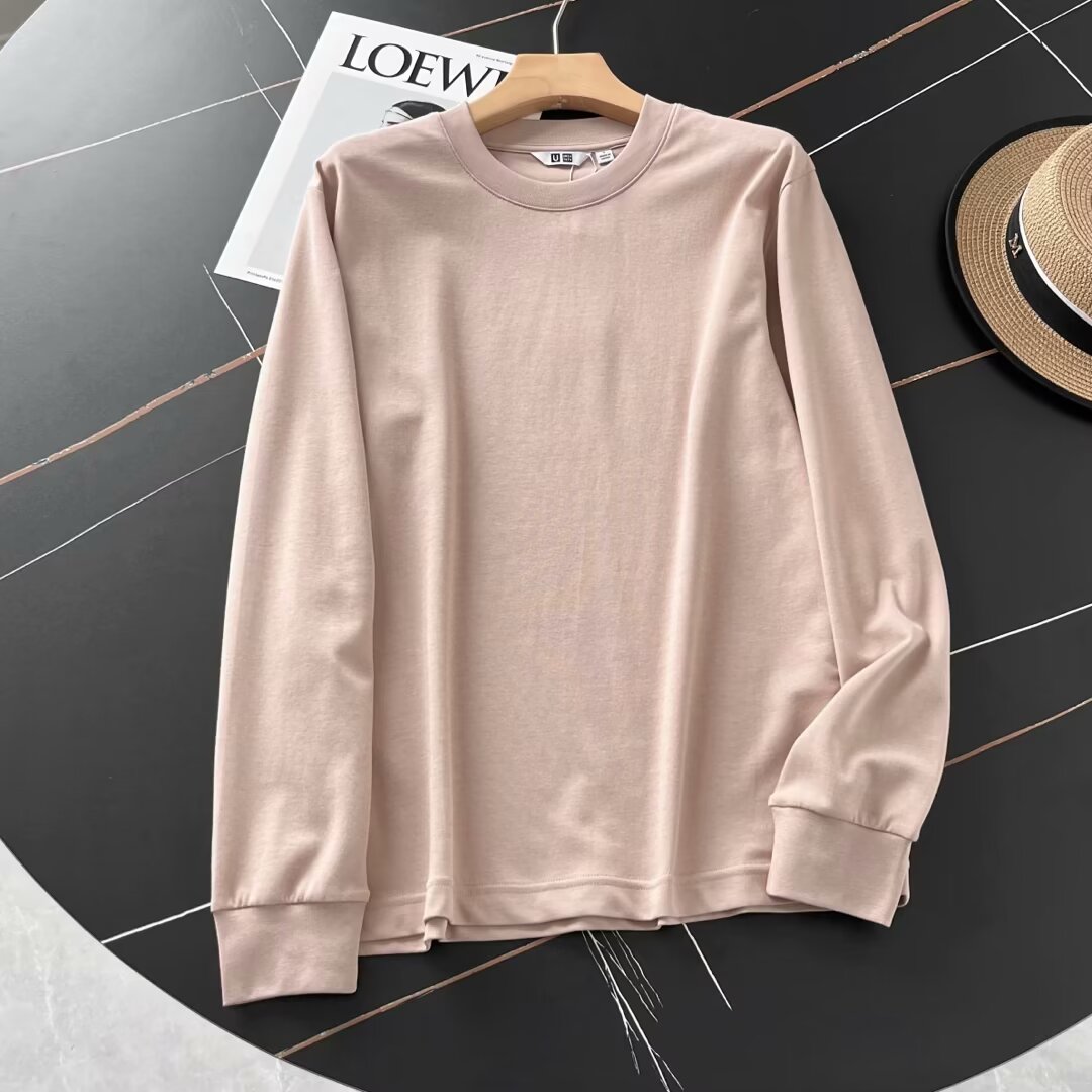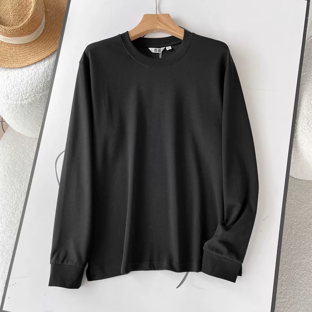 피팅 룸 2024 봄과 여름 새로운 남성/여성 코튼 혼합 느슨한 둥근 목 긴 소매베이스 셔츠 티셔츠 465193스토어 가기