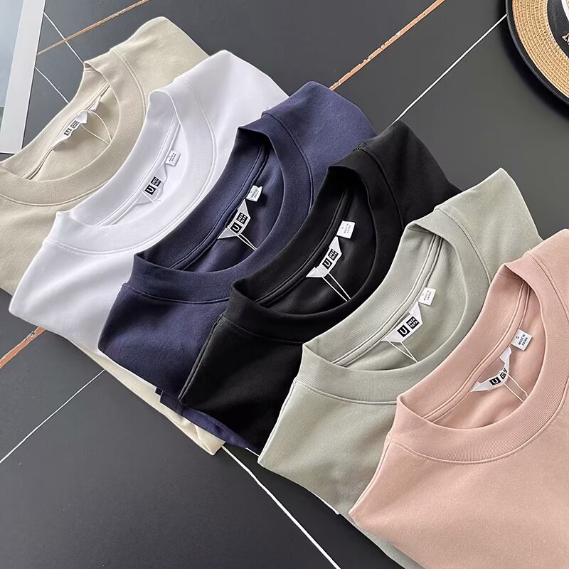 피팅 룸 2024 봄과 여름 새로운 남성/여성 코튼 혼합 느슨한 둥근 목 긴 소매베이스 셔츠 티셔츠 465193