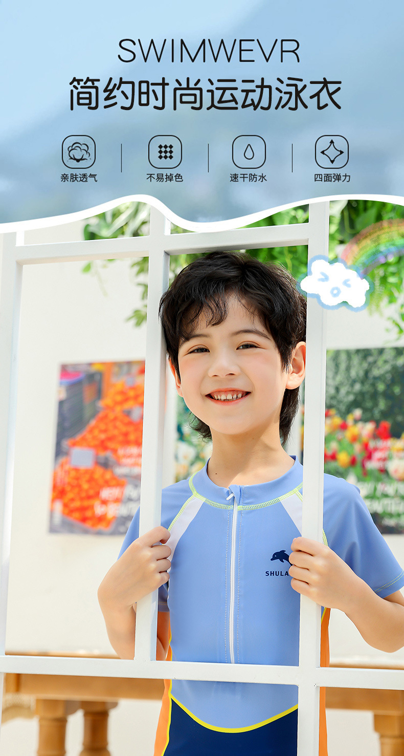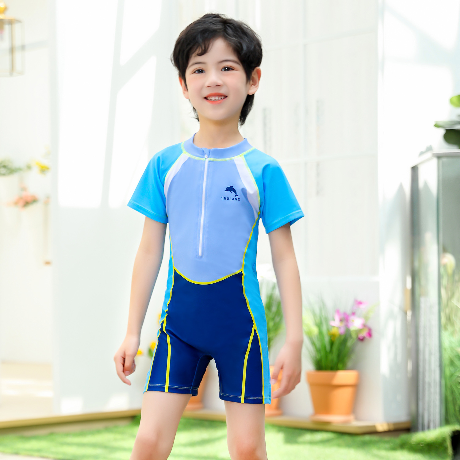 여름 남아 수영복 원피스 배색 속건 중대형 아동 수영복 유아 아기 수영복 온천 어린이 한국 스타일