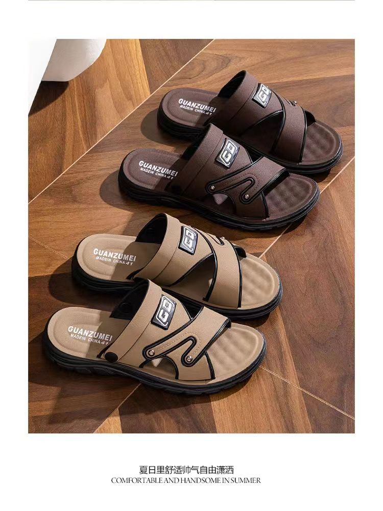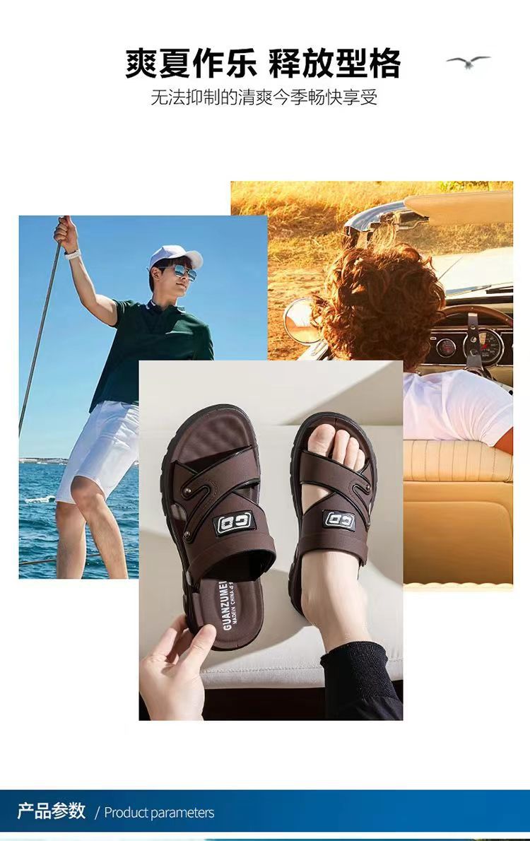 무료 배송 남성 샌들 홈 야외 미끄럼 방지 소프트 하단 통기성 가죽 바닥 비치 듀얼 사용 남성용 샌들 및 슬리퍼