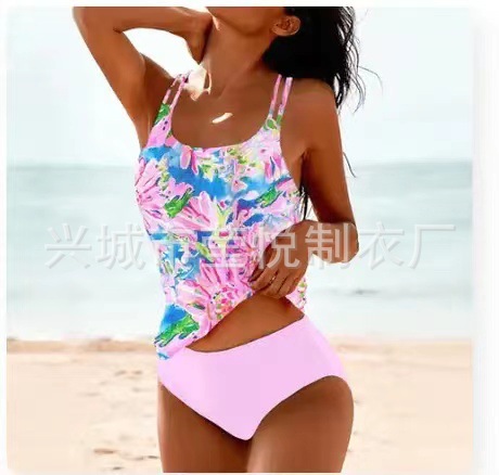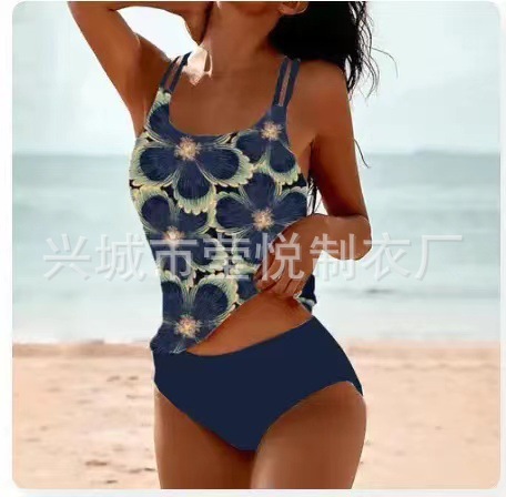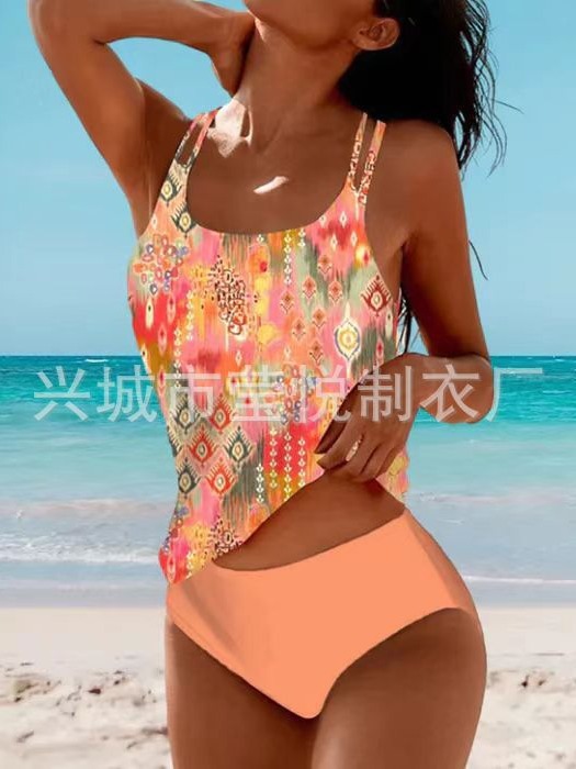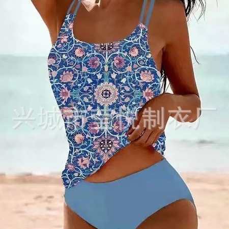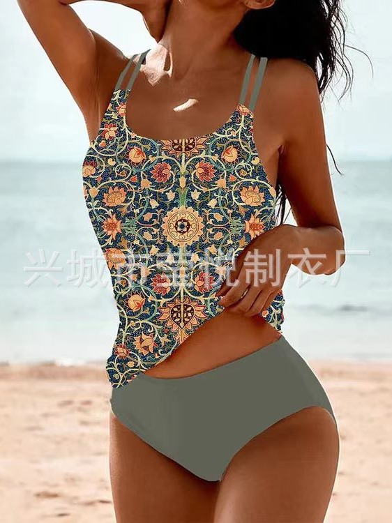 새로운 빈티지 인쇄 분할 높은 허리 보수 아마존 여름 비키니 비치 인쇄 스트랩 수영복스토어 가기