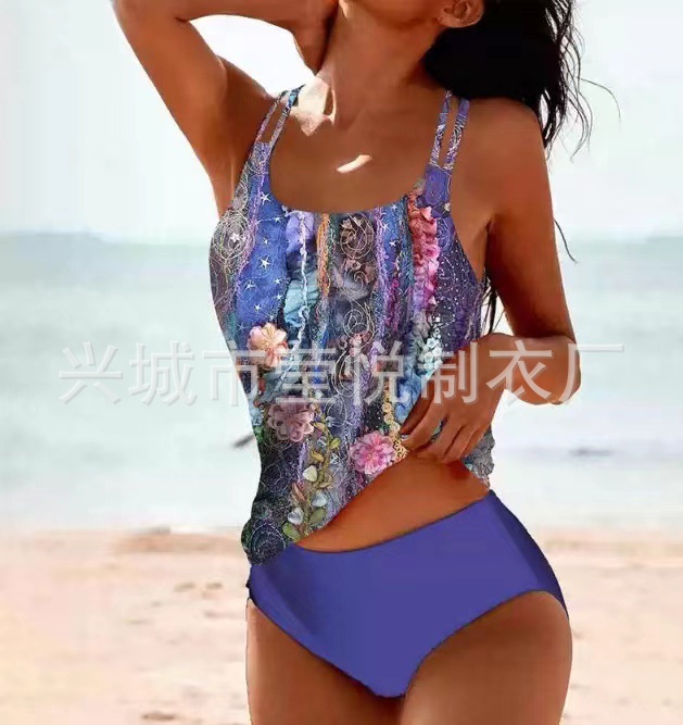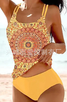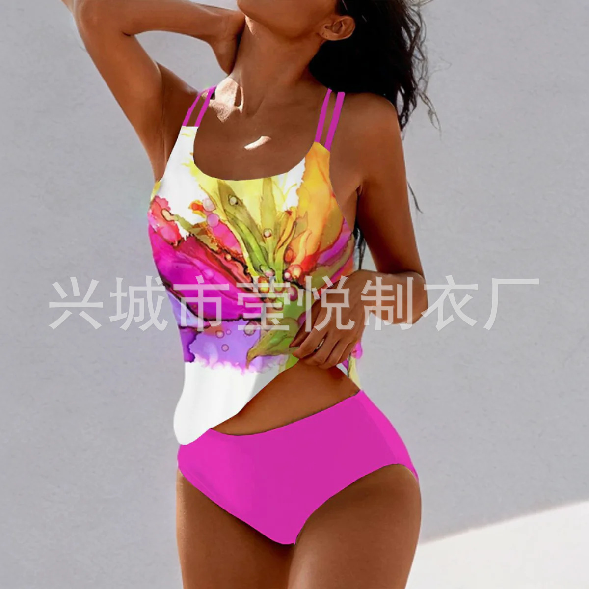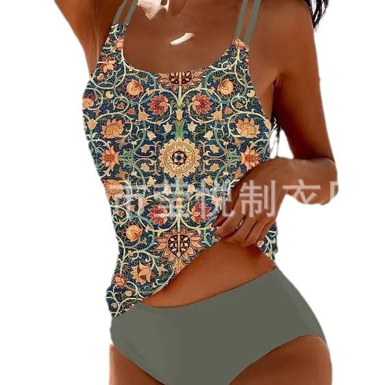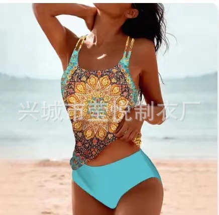 새로운 빈티지 인쇄 분할 높은 허리 보수 아마존 여름 비키니 비치 인쇄 스트랩 수영복