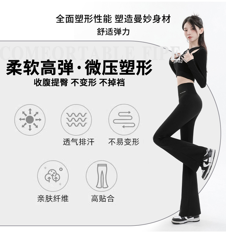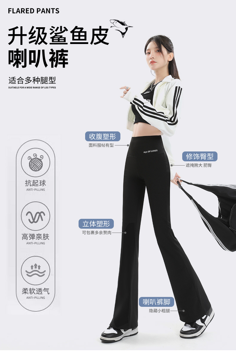 슬립 팬츠 상어 팬츠 여성의 봄 하이 웨이스트 슬림 핏 말굽 와이드 레그 팬츠 여성 아우터 착용 타이트한 플레어 팬츠 바닥스토어 가기